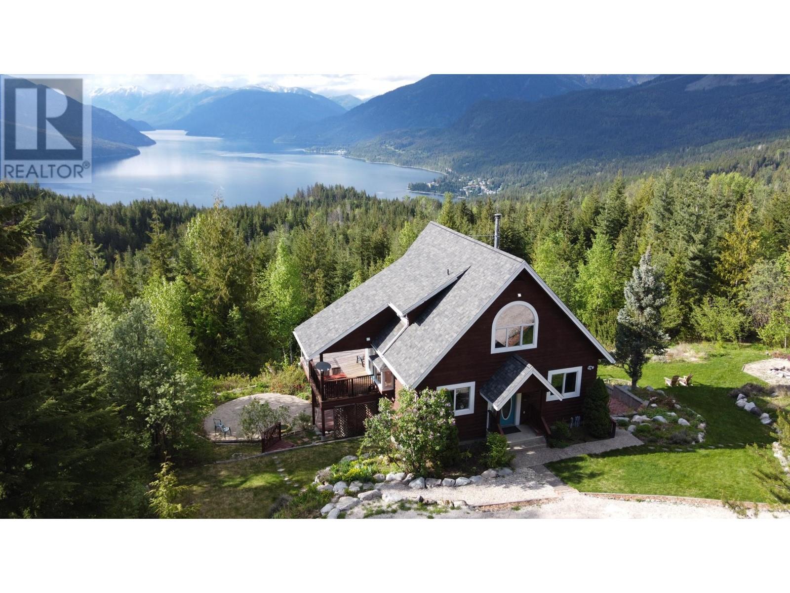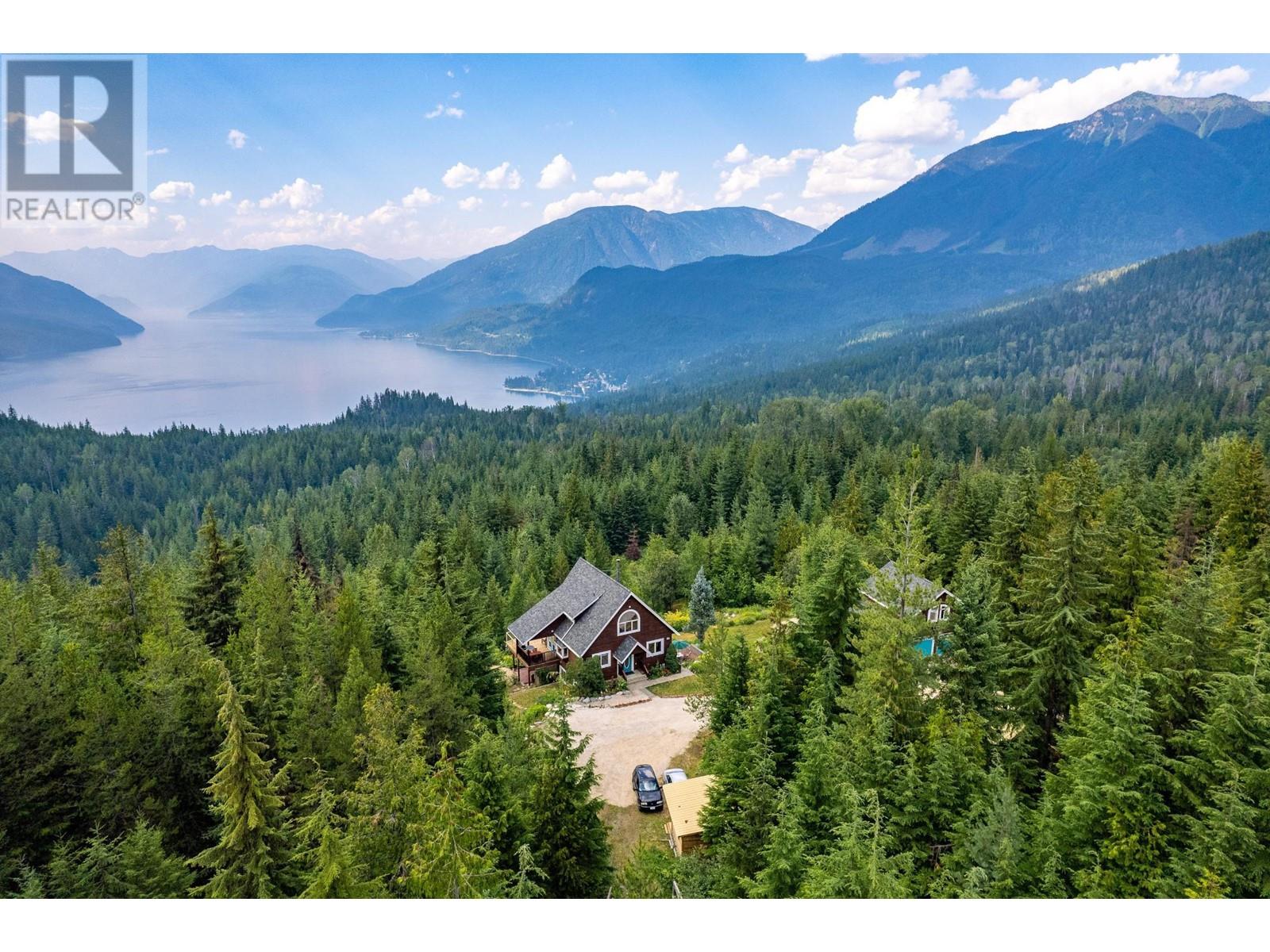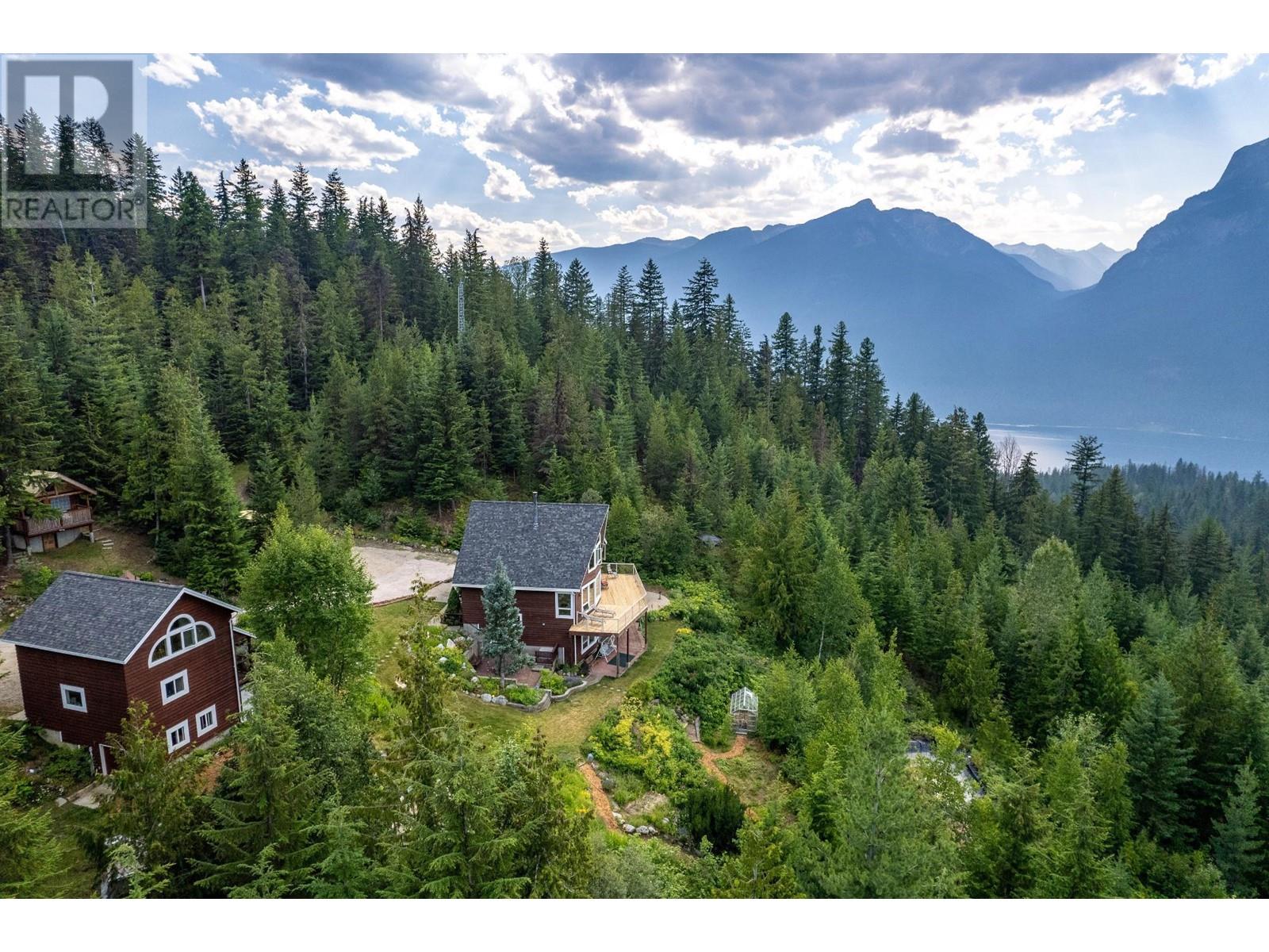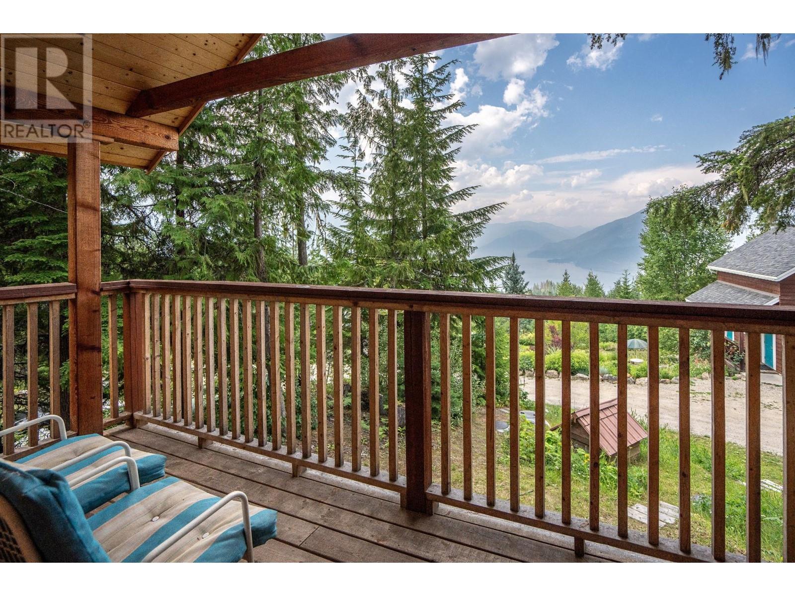 Amazing Value and Views. Don't overlook this truly spectacular property that overlooks the Slocan Lake with panoramic views from the Valhalla Mountain range to the Selkirk Range and uninterupted views of Slocan Lake from Silverton, New Denver and past Rosebery. This 16 acre mostly treed property offers 7 bedrooms and 4 full bathrooms between the 4 bedroom home, 2 bedroom suite above the garage and the loft style log cabin. Welcome to your own private mountain retreat and your piece of the Kootenays. The main home was designed as a hybrid Timber Frame and oriented to take advantage of the views from all 3 finished levels and a bonus inlaw suite in the daylight walk out lower level. The 2 car garage was built for guests to enjoy their own private space, while the basement provides the ideal workshop or storage area. As a bonus, there is the cabin which can be a separate office or guest/family hideout with the rustic outdoor feel. The property has a large fenced area for the english style gardens, and vegetable area. The property is located 5 mins from Silverton, 1 hr from Nelson and Castlegar and immediate access to crown land for hiking, biking and exploring. With Slocan Lake below exploring it by boat or enjoying a paddle is minutes away. There are few properties that offer this many buildings and features at this price. Whether keeping it private or sharing it with family and friends, this property will keep you and your guests smiling. (id:4069)