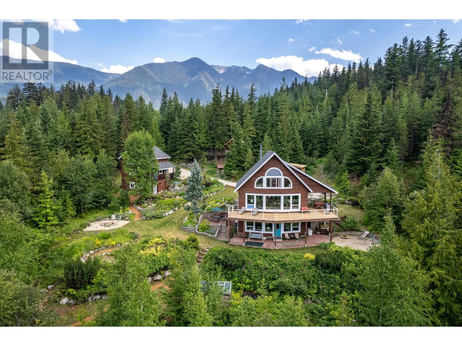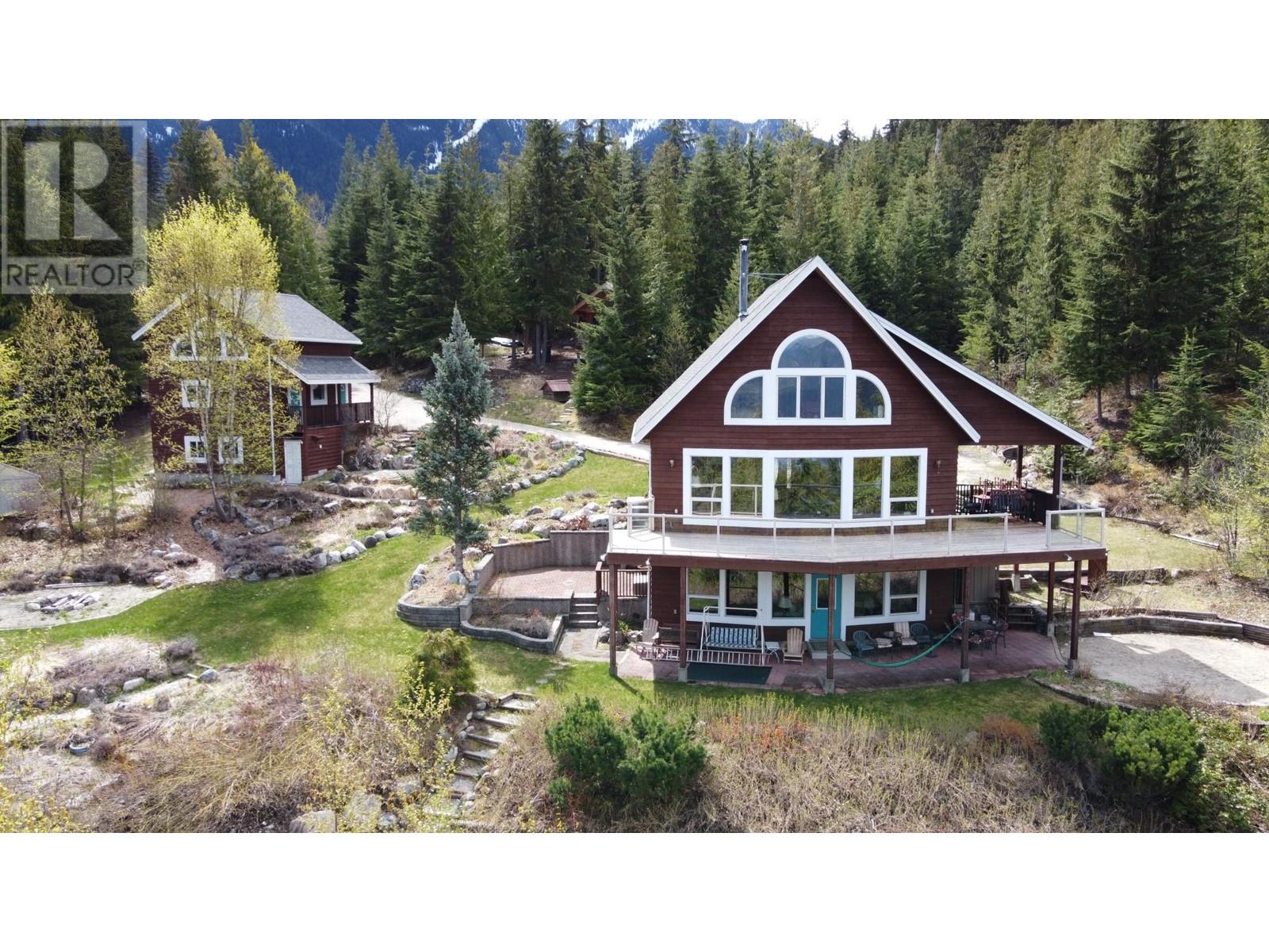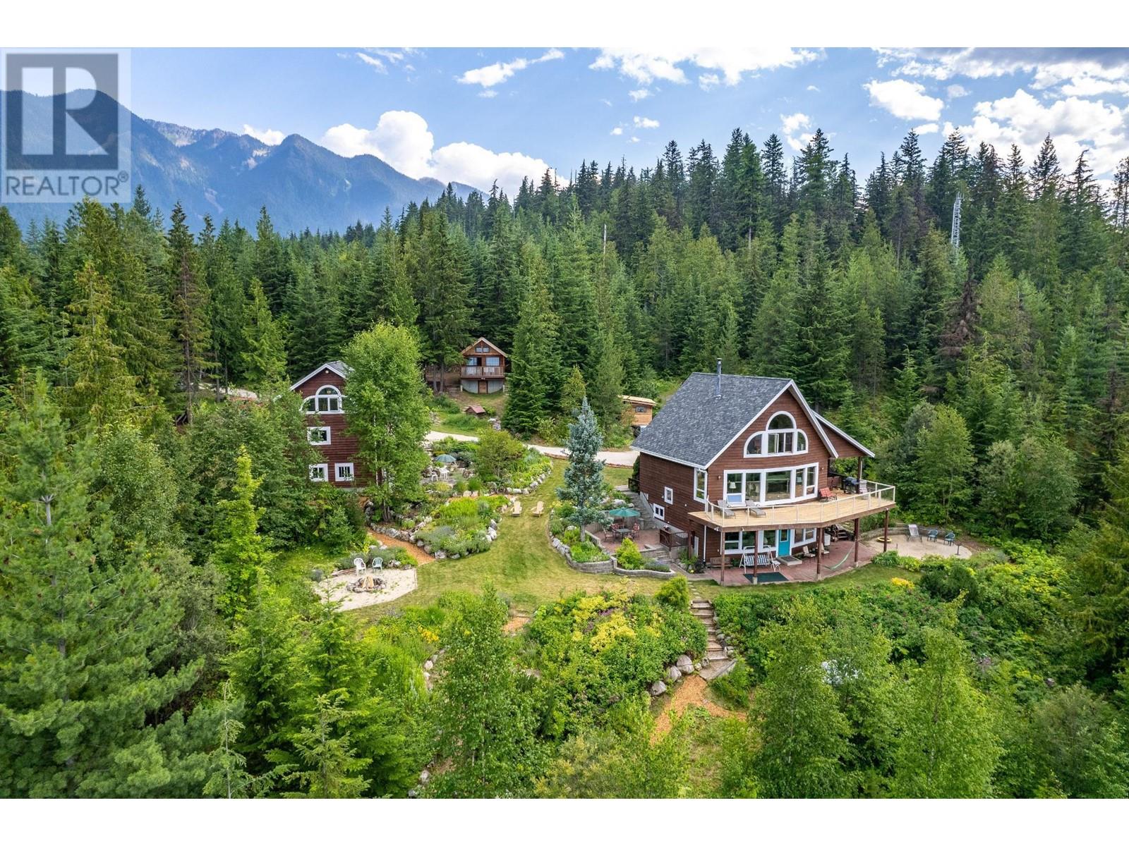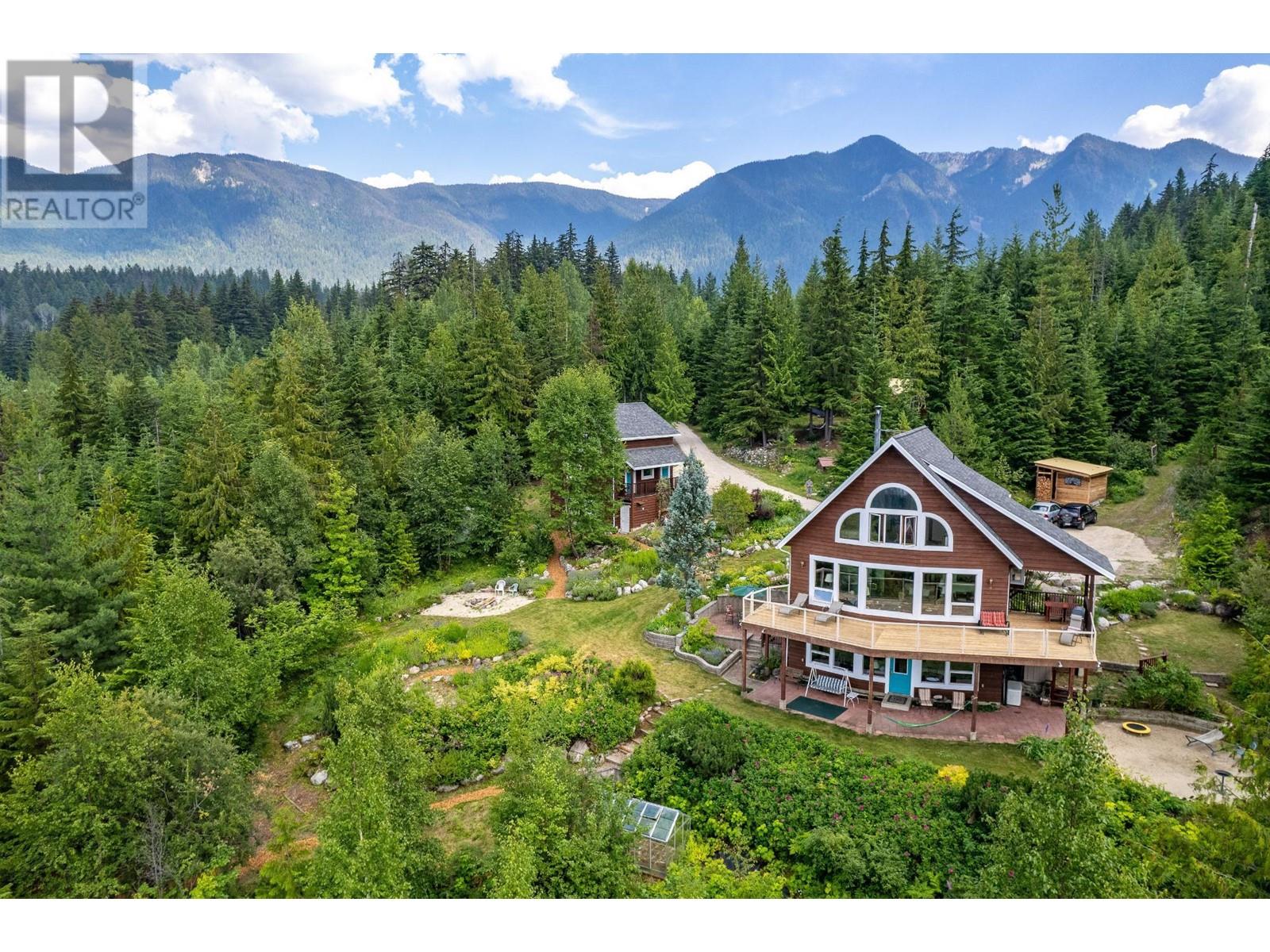 Amazing Value and Views. Don't overlook this truly spectacular property that overlooks the Slocan Lake with panoramic views from the Valhalla Mountain range to the Selkirk Range and uninterupted views of Slocan Lake from Silverton, New Denver and past Rosebery. This 16 acre mostly treed property offers 7 bedrooms and 4 full bathrooms between the 4 bedroom home, 2 bedroom suite above the garage and the loft style log cabin. Welcome to your own private mountain retreat and your piece of the Kootenays. The main home was designed as a hybrid Timber Frame and oriented to take advantage of the views from all 3 finished levels and a bonus inlaw suite in the daylight walk out lower level. The 2 car garage was built for guests to enjoy their own private space, while the basement provides the ideal workshop or storage area. As a bonus, there is the cabin which can be a separate office or guest/family hideout with the rustic outdoor feel. The property has a large fenced area for the english style gardens, and vegetable area. The property is located 5 mins from Silverton, 1 hr from Nelson and Castlegar and immediate access to crown land for hiking, biking and exploring. With Slocan Lake below exploring it by boat or enjoying a paddle is minutes away. There are few properties that offer this many buildings and features at this price. Whether keeping it private or sharing it with family and friends, this property will keep you and your guests smiling. (id:4069)