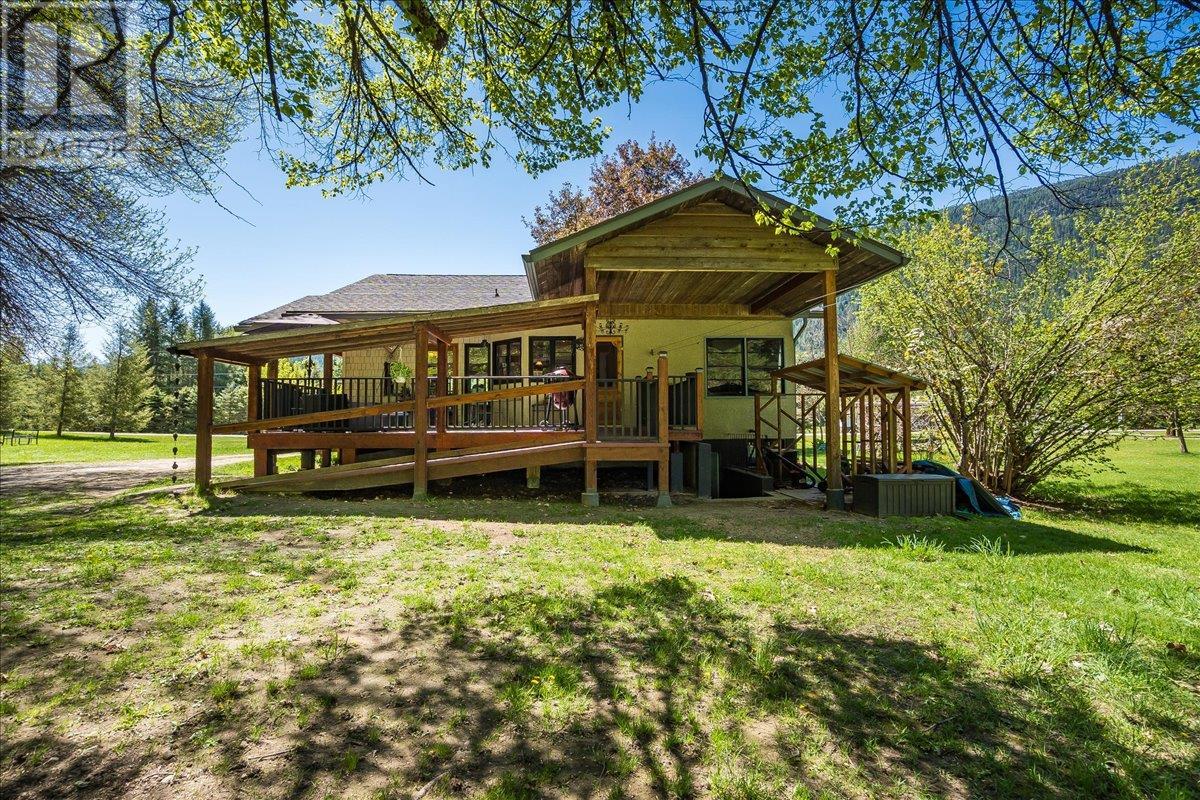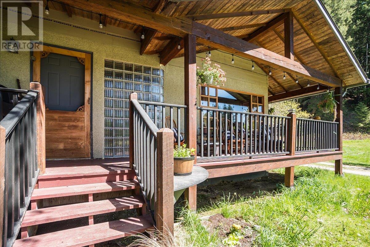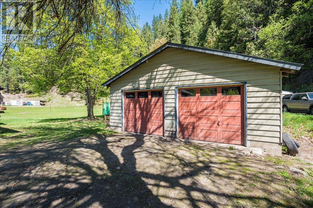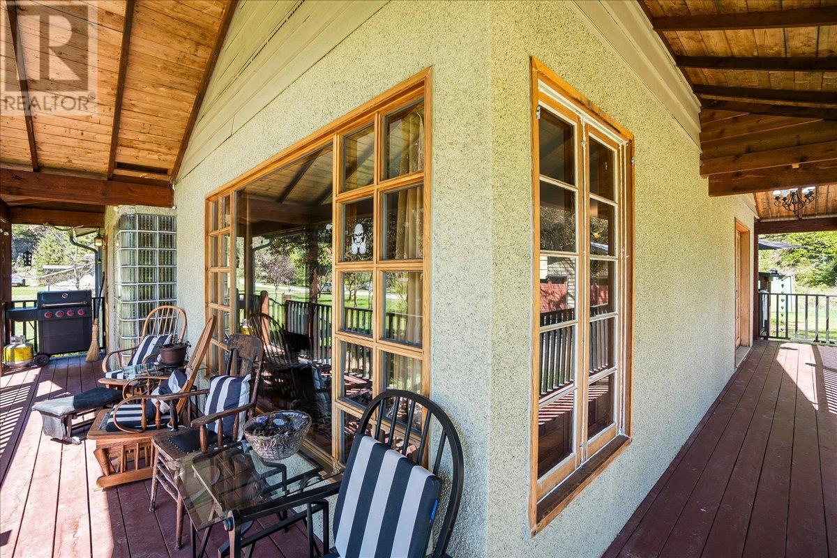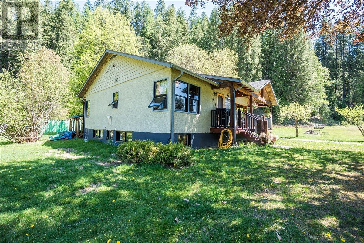 This charming, fully renovated home offers the perfect blend of vintage character and modern upgrades. Nestled in a prime, sunny location on 4.91 acres, this home boasts a wraparound porch, perfect for enjoying the peaceful, serene surroundings. The double bay, 2-car detached garage provides ample space for vehicles and storage. The property is self-sufficient, with its own well and a unique cold house built into the mountain—ideal for storing fresh garden veggies and fruit crops year-round. The yard features a variety of fruit trees, including pear, plum, apple, cherry, & hazelnut, along with a 20-year-old grapevine, creating a picturesque, productive landscape. The property is private and offers endless opportunities for outdoor exploration including tubing, kayaking, or fishing in the nearby Slocan River, or enjoying the mountains. Renovations in 2009, include a new roof, updated plumbing, underground electrical, & drainage system. Inside, you'll find a beautiful country kitchen, a large cozy living room featuring a stunning glass block wall, & three spacious bedrooms. The full bathroom includes a custom, separate shower. Garden doors in the dining room lead to a wraparound porch. Partially finished basement is ready for your personal touch. Located in a quiet, unzoned area, this home offers a peaceful lifestyle with endless recreational opportunities just outside your door. (1st 2 photoas AI ART showing lawn and cement pad where it is a dirt driveway) (id:4069)