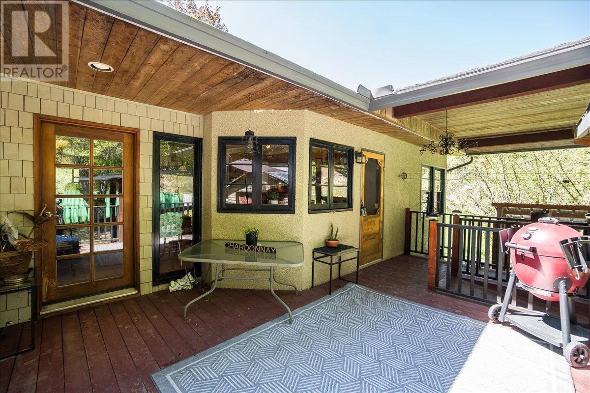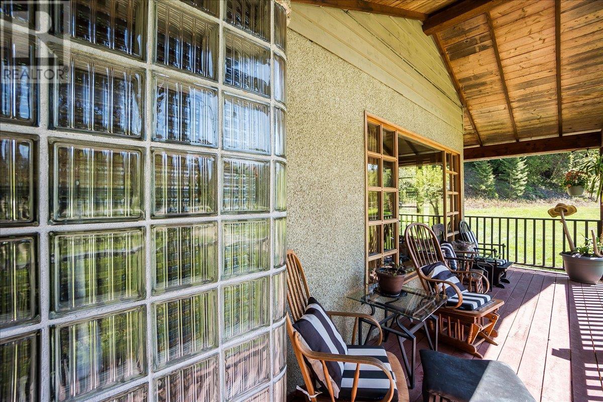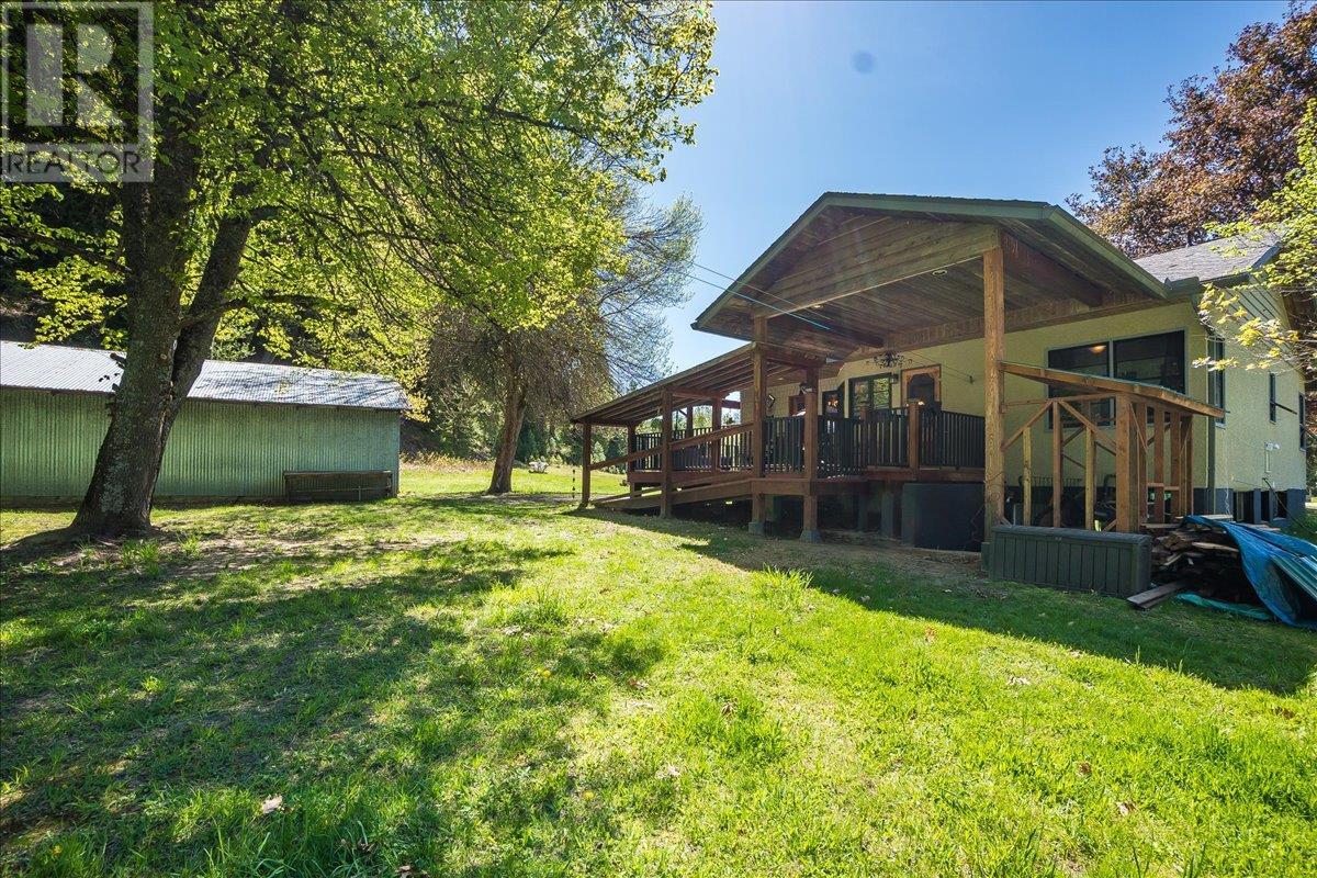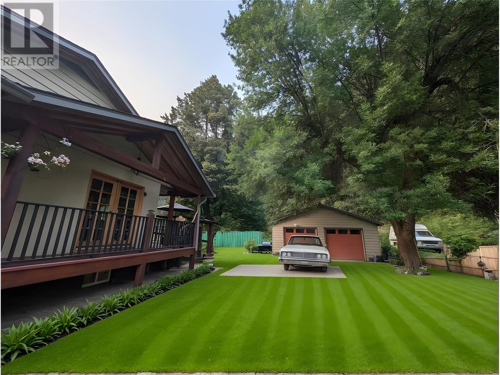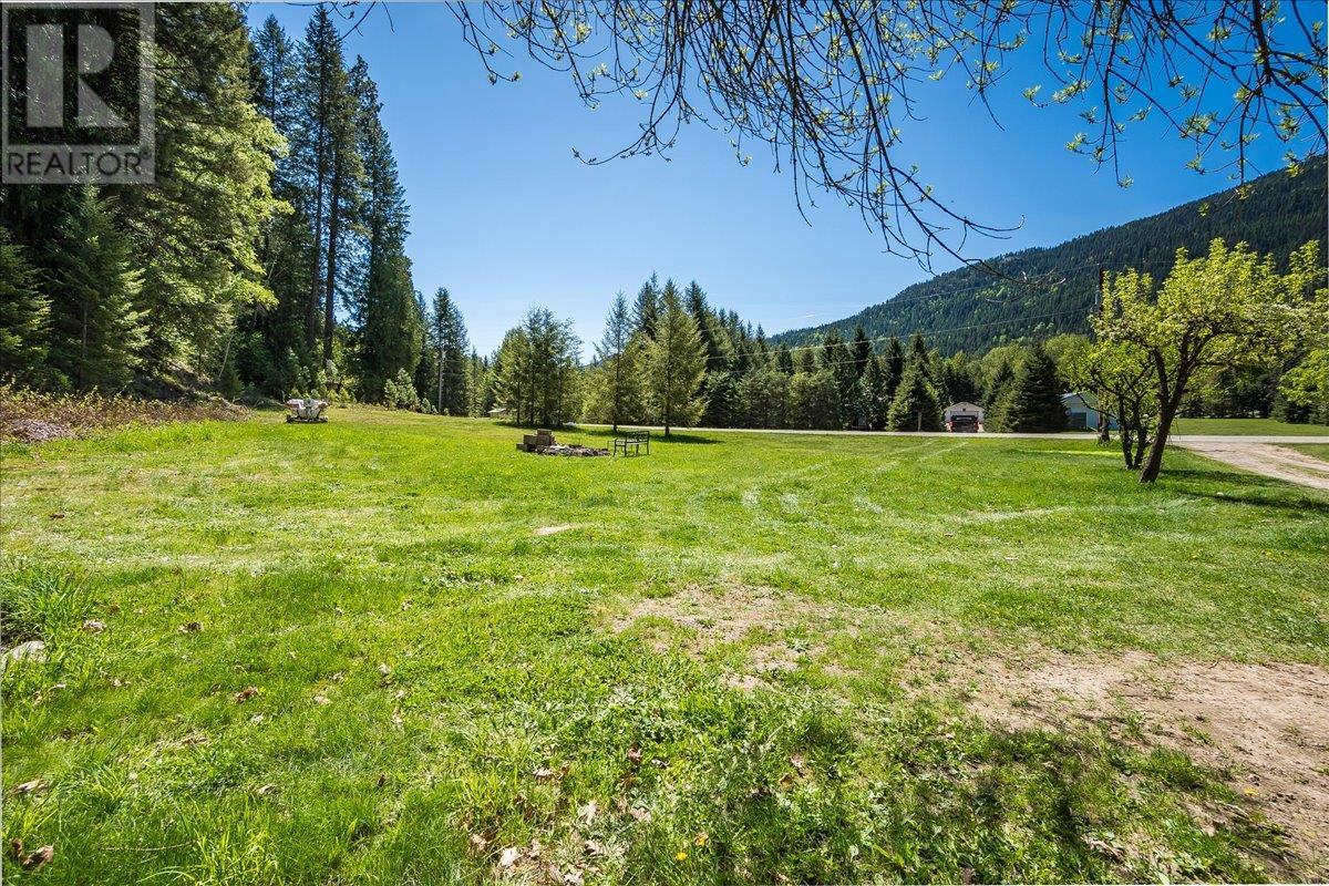 This charming, fully renovated home offers the perfect blend of vintage character and modern upgrades. Nestled in a prime, sunny location on 4.91 acres, this home boasts a wraparound porch, perfect for enjoying the peaceful, serene surroundings. The double bay, 2-car detached garage provides ample space for vehicles and storage. The property is self-sufficient, with its own well and a unique cold house built into the mountain—ideal for storing fresh garden veggies and fruit crops year-round. The yard features a variety of fruit trees, including pear, plum, apple, cherry, & hazelnut, along with a 20-year-old grapevine, creating a picturesque, productive landscape. The property is private and offers endless opportunities for outdoor exploration including tubing, kayaking, or fishing in the nearby Slocan River, or enjoying the mountains. Renovations in 2009, include a new roof, updated plumbing, underground electrical, & drainage system. Inside, you'll find a beautiful country kitchen, a large cozy living room featuring a stunning glass block wall, & three spacious bedrooms. The full bathroom includes a custom, separate shower. Garden doors in the dining room lead to a wraparound porch. Partially finished basement is ready for your personal touch. Located in a quiet, unzoned area, this home offers a peaceful lifestyle with endless recreational opportunities just outside your door. (1st 2 photoas AI ART showing lawn and cement pad where it is a dirt driveway) (id:4069)