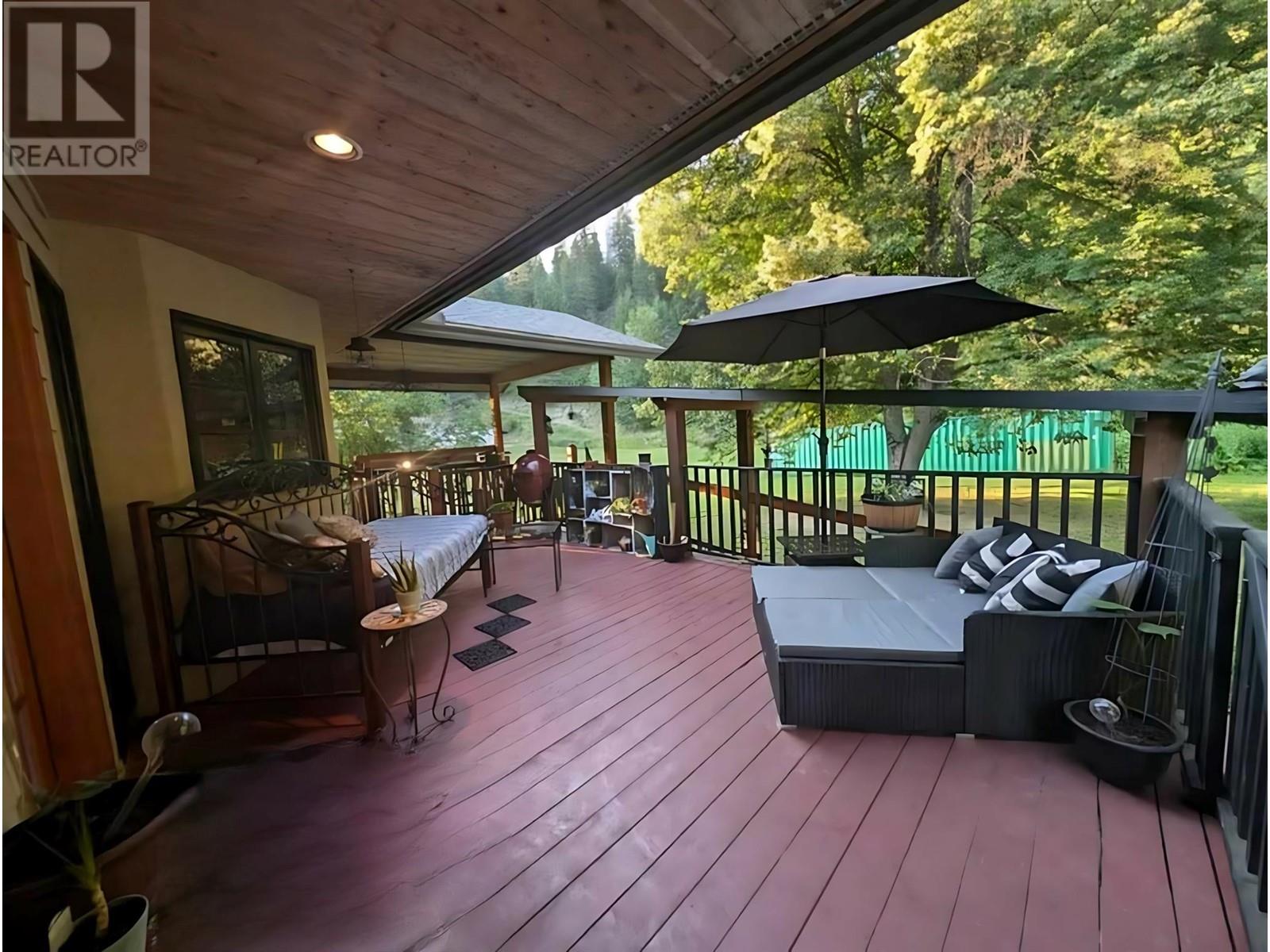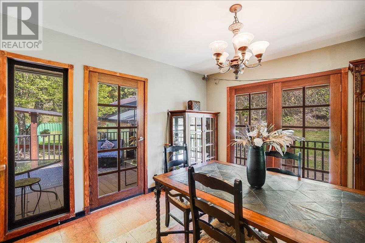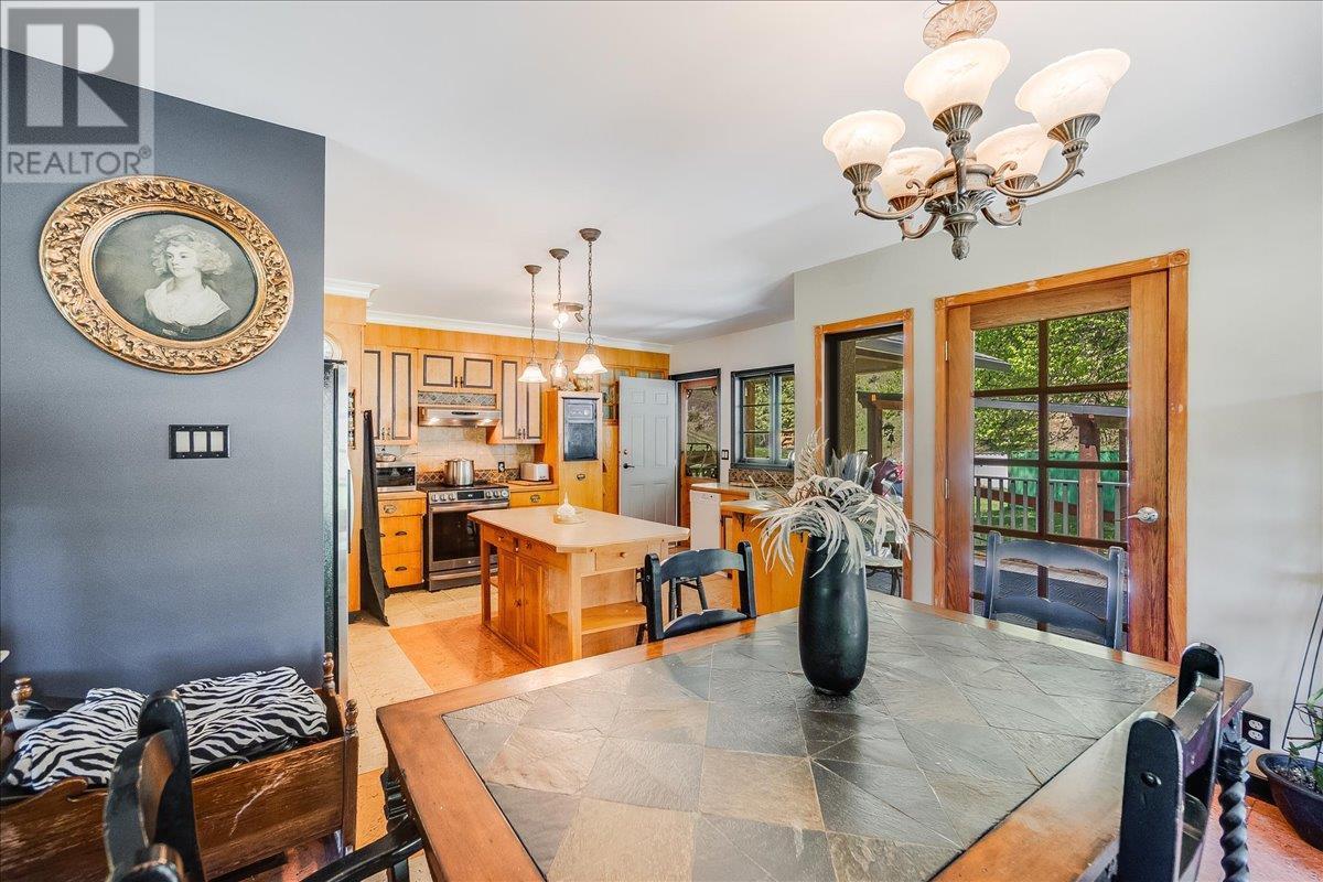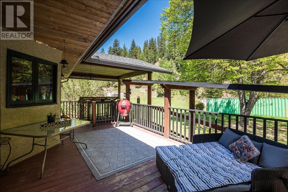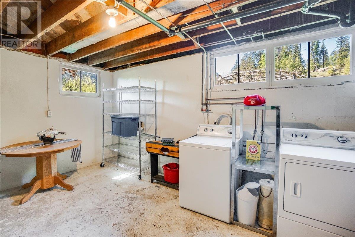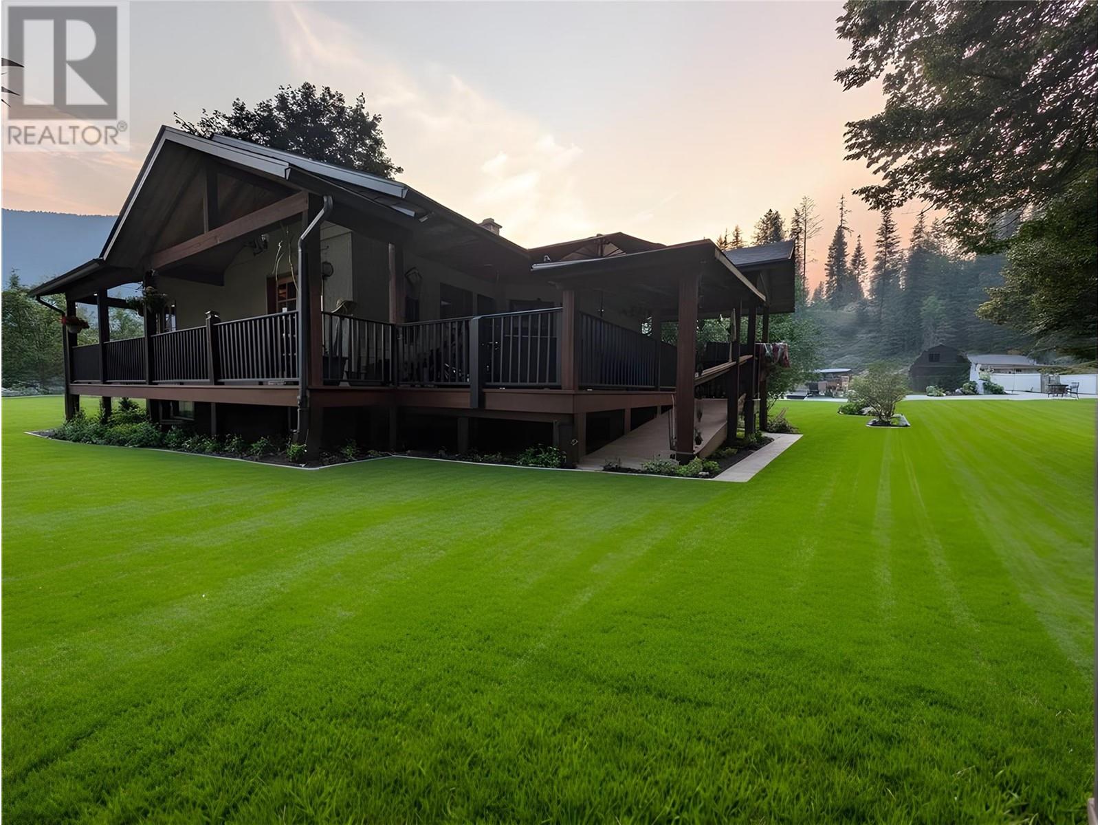 This charming, fully renovated home offers the perfect blend of vintage character and modern upgrades. Nestled in a prime, sunny location on 4.91 acres, this home boasts a wraparound porch, perfect for enjoying the peaceful, serene surroundings. The double bay, 2-car detached garage provides ample space for vehicles and storage. The property is self-sufficient, with its own well and a unique cold house built into the mountain—ideal for storing fresh garden veggies and fruit crops year-round. The yard features a variety of fruit trees, including pear, plum, apple, cherry, & hazelnut, along with a 20-year-old grapevine, creating a picturesque, productive landscape. The property is private and offers endless opportunities for outdoor exploration including tubing, kayaking, or fishing in the nearby Slocan River, or enjoying the mountains. Renovations in 2009, include a new roof, updated plumbing, underground electrical, & drainage system. Inside, you'll find a beautiful country kitchen, a large cozy living room featuring a stunning glass block wall, & three spacious bedrooms. The full bathroom includes a custom, separate shower. Garden doors in the dining room lead to a wraparound porch. Partially finished basement is ready for your personal touch. Located in a quiet, unzoned area, this home offers a peaceful lifestyle with endless recreational opportunities just outside your door. (1st 2 photoas AI ART showing lawn and cement pad where it is a dirt driveway) (id:4069)