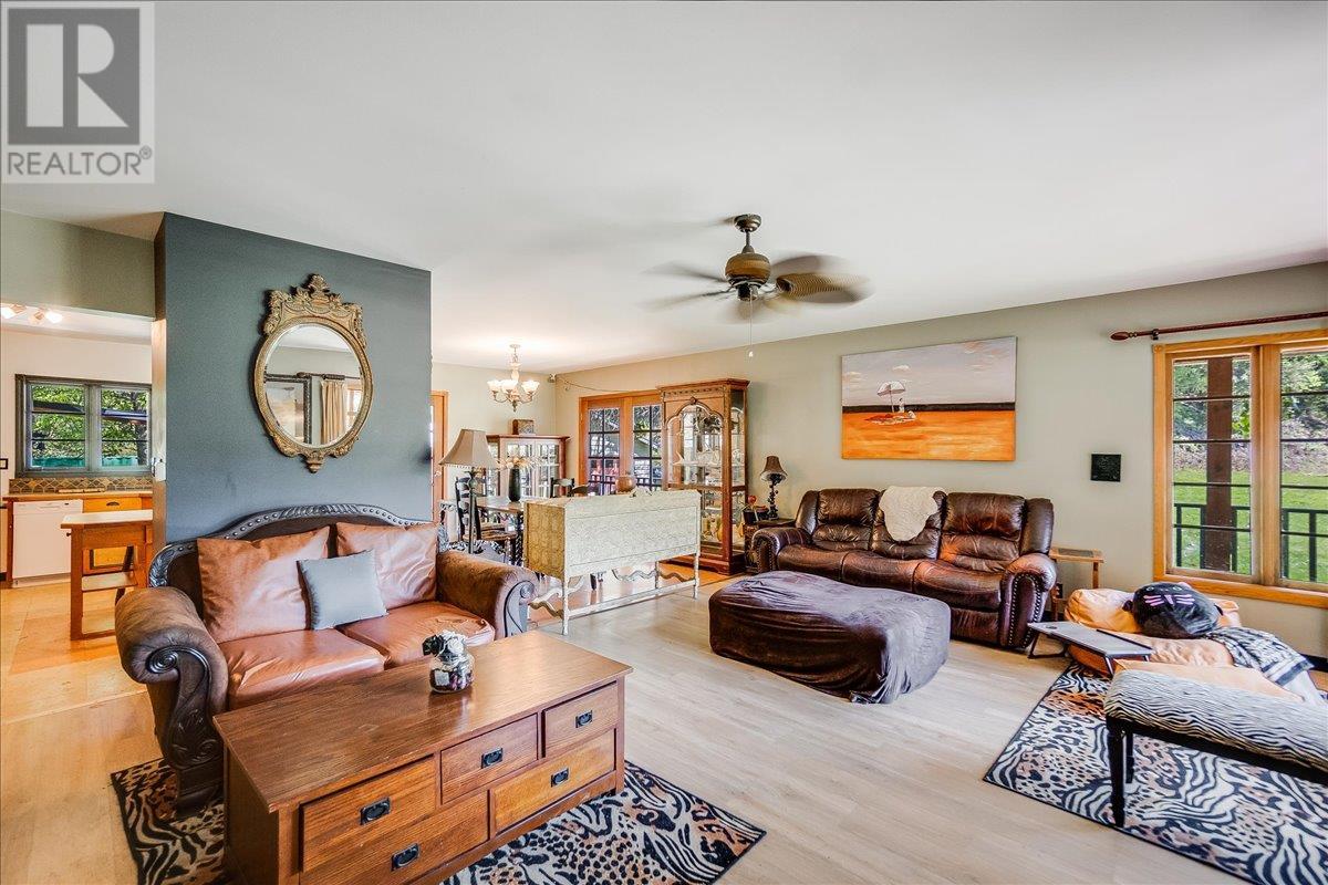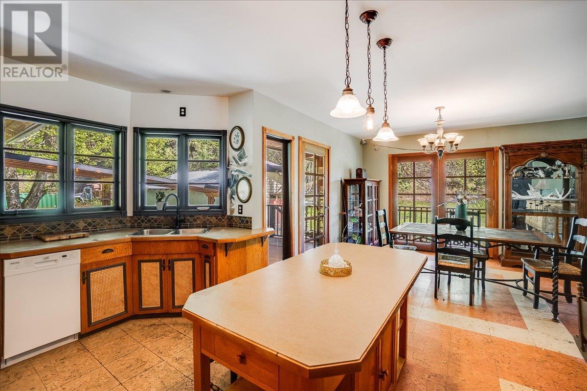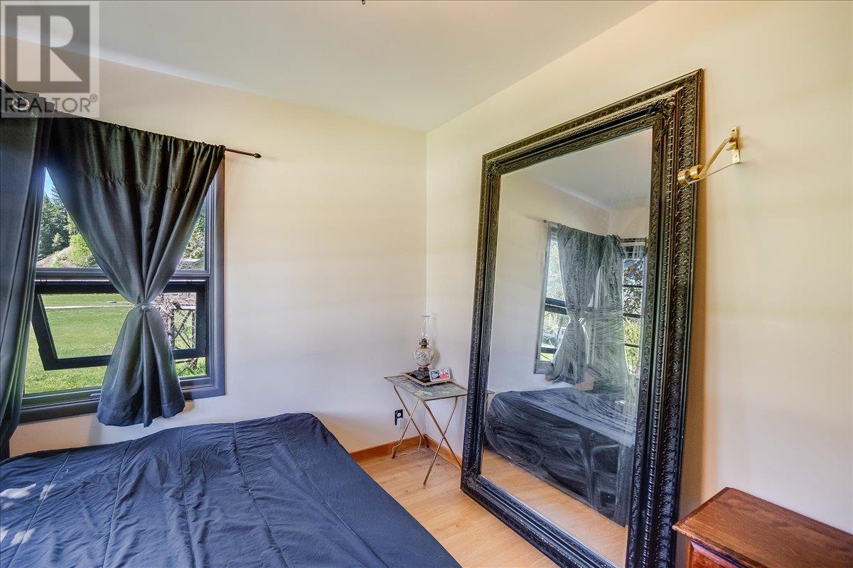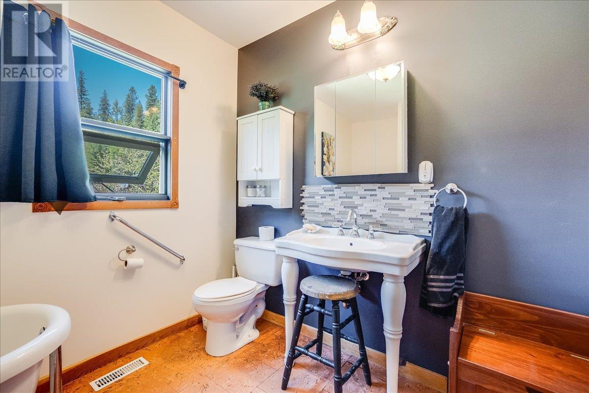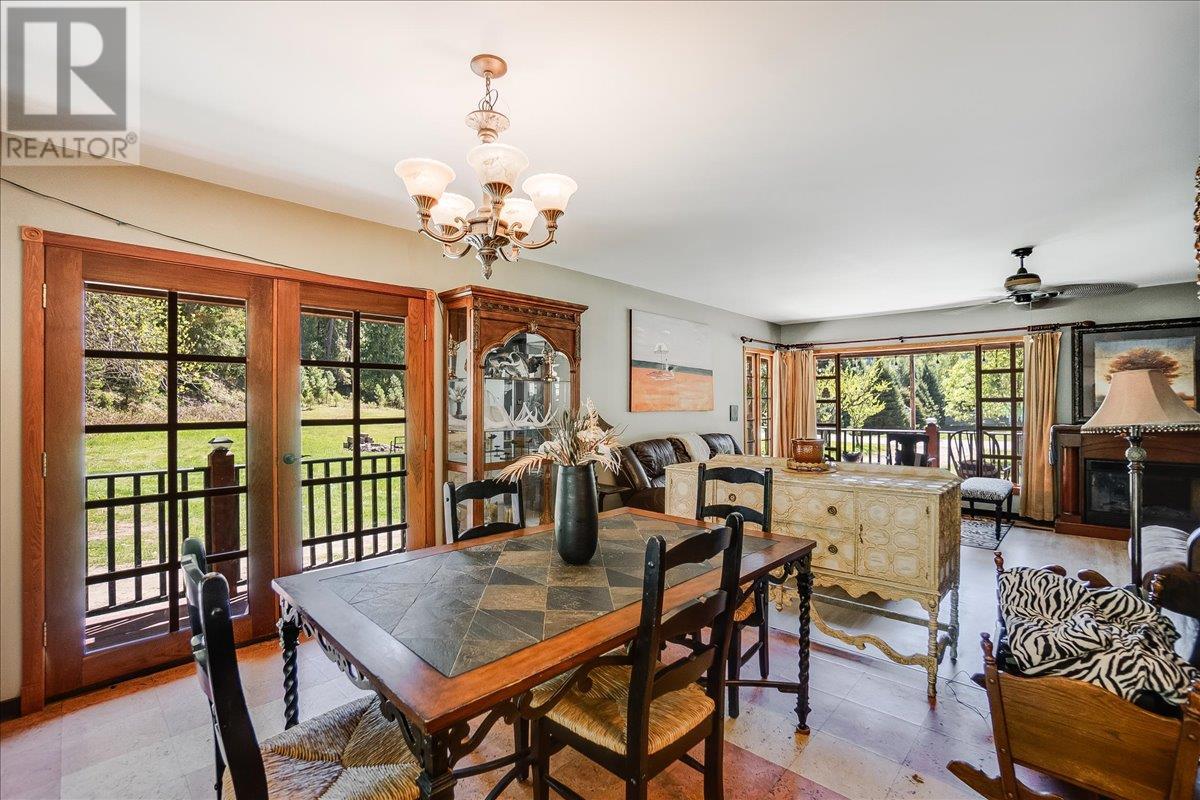 This charming, fully renovated home offers the perfect blend of vintage character and modern upgrades. Nestled in a prime, sunny location on 4.91 acres, this home boasts a wraparound porch, perfect for enjoying the peaceful, serene surroundings. The double bay, 2-car detached garage provides ample space for vehicles and storage. The property is self-sufficient, with its own well and a unique cold house built into the mountain—ideal for storing fresh garden veggies and fruit crops year-round. The yard features a variety of fruit trees, including pear, plum, apple, cherry, & hazelnut, along with a 20-year-old grapevine, creating a picturesque, productive landscape. The property is private and offers endless opportunities for outdoor exploration including tubing, kayaking, or fishing in the nearby Slocan River, or enjoying the mountains. Renovations in 2009, include a new roof, updated plumbing, underground electrical, & drainage system. Inside, you'll find a beautiful country kitchen, a large cozy living room featuring a stunning glass block wall, & three spacious bedrooms. The full bathroom includes a custom, separate shower. Garden doors in the dining room lead to a wraparound porch. Partially finished basement is ready for your personal touch. Located in a quiet, unzoned area, this home offers a peaceful lifestyle with endless recreational opportunities just outside your door. (1st 2 photoas AI ART showing lawn and cement pad where it is a dirt driveway) (id:4069)
