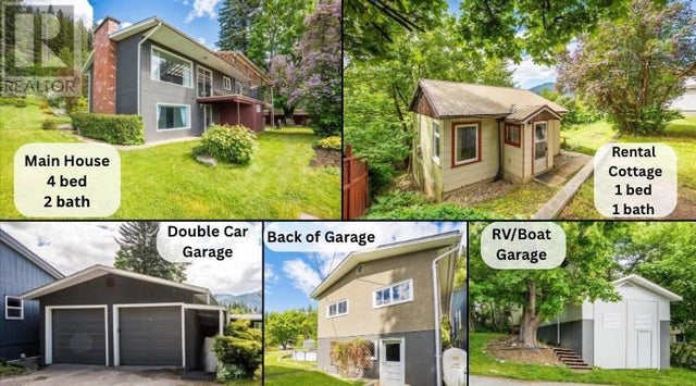 Well-maintained property located in South Slocan, in a great family-friendly neighbourhood. The property offers two homes- a 4 bedroom, 2 bathroom house plus a 1 bed, 1 bath cottage, making a great mortgage helper. There is ample storage for vehicles with a 2 car garage (with new garage doors and new roof) plus a large RV/boat garage. The main floor of the house features a large living room, dining area, kitchen, 2 bedrooms, and bathroom. Downstairs offers a large family room, two more bedrooms, and another full bath with a new ceramic shower and a sauna. The property has seen many upgrades, there is little to do but move in and add your own personal touch to the place. Upgrades include a brand new heat pump (central air, heat and a/c via heat pump) new hot water tank, new roof on the double mechanic garage. Newer windows in the house and cottage (which has greatly reduced any highway noise in the house), fresh exterior paint, and insulation in the attic. This property is close to many amenities such as grocery stores, Elementary and High Schools, a bank, a gas station, garden center, fabulous swimming holes, and right next to the rail trail. Only 20 min to Nelson, Castlegar, and the Slocan Valley, this home makes for a desirable location. Book your viewing today! (id:4069)