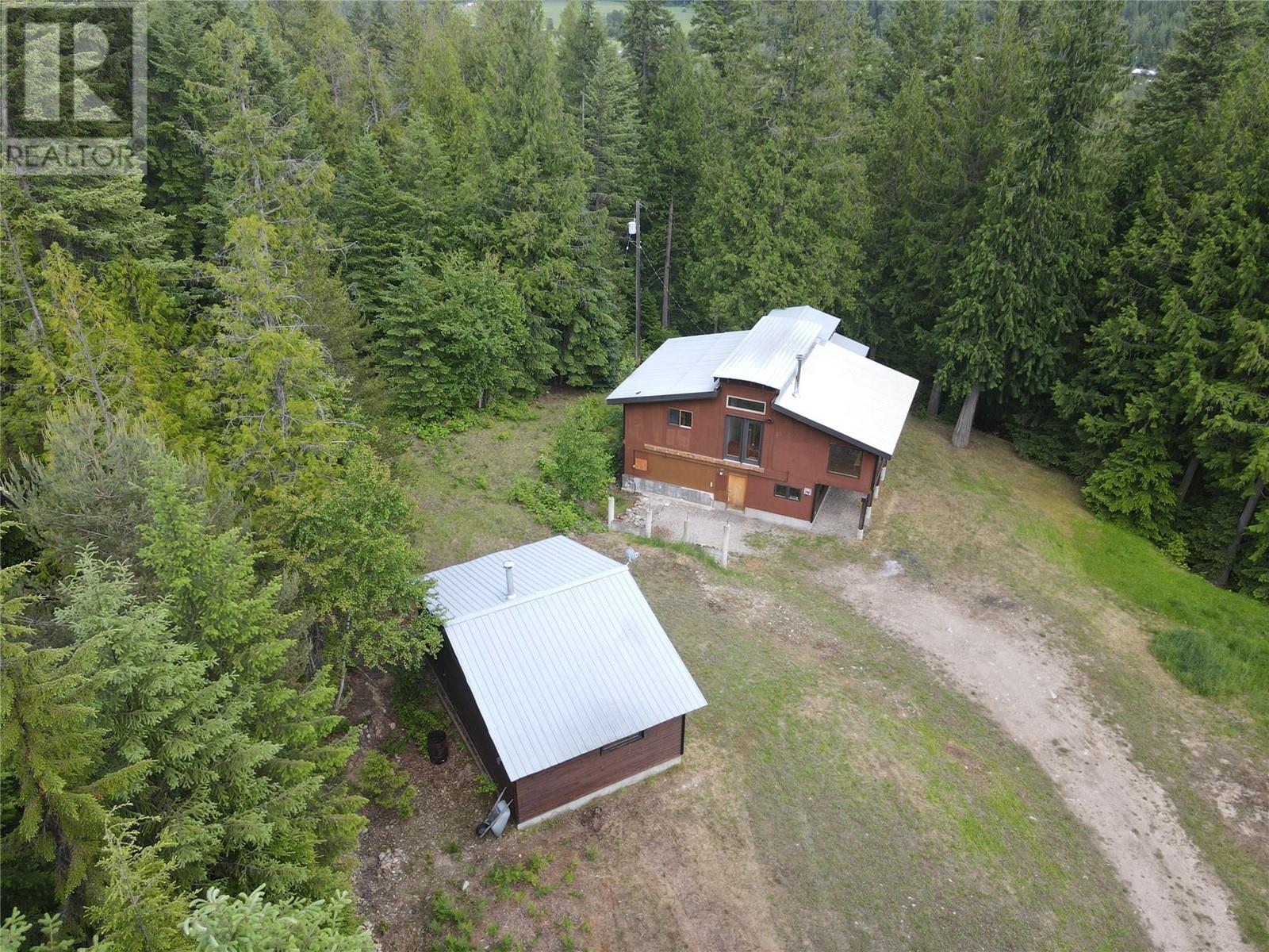 Tucked away in a serene, forested setting, this unique property offers two separate titles and a rare opportunity for privacy and further potential. The first parcel is 3.23 acres and features a charming two-storey home full of Kootenay character. Warm wood flooring, abundant windows, and cozy living spaces create an inviting atmosphere. Currently a one-bedroom home, there's potential to convert it into two or more bedrooms. Outside, you'll find a small one-bay shop and an incredible large 30x50 ft shop with plumbing and electrical. The surrounding yard is open and usable. The second title is 9.41 undeveloped acres of forested land—a blank canvas for your future plans. Both properties have water licences. (id:4069)