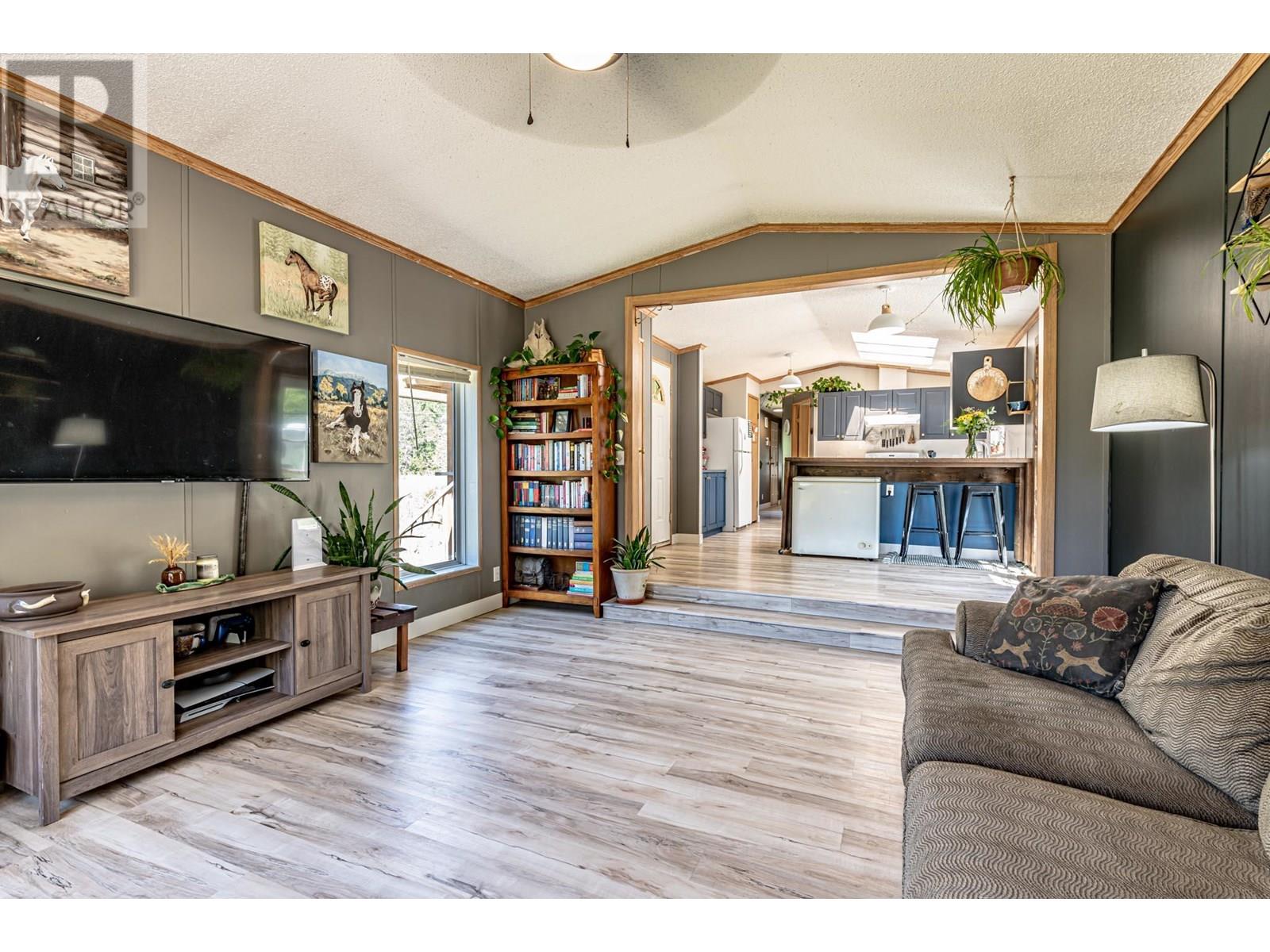 Tucked in rural Salmo just minutes from town, this sweet country home offers bright, open living with a welcoming feel. Vaulted ceilings and skylights flood the kitchen with natural light, highlighting the breakfast bar and handy pantry. Two well-sized bedrooms, a spacious bathroom with laundry, and thoughtful touches throughout make it move-in ready. Step outside to a massive 14x32 sun deck perfect for morning coffee or evening unwinding, plus a fully fenced area for pets or kids to roam and play. The flat, sunny .6-acre lot backs onto crown land and includes a chicken coop, great garden potential, and RV or tiny home hookups already in place. With a 15gpm well and a 2016 septic system designed to support a 5-bedroom home, there’s peace of mind and room to grow. Located close to the Salmo golf course, ski hill, and everyday amenities—and just 30 minutes to Nelson, Trail or Castlegar—this is the perfect package for first-time buyers, downsizers, or anyone craving simple living with space to breathe. (id:4069)