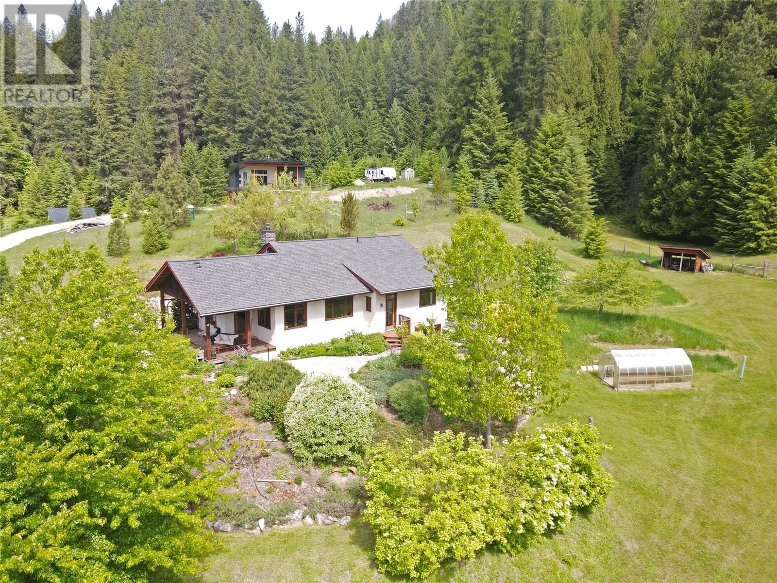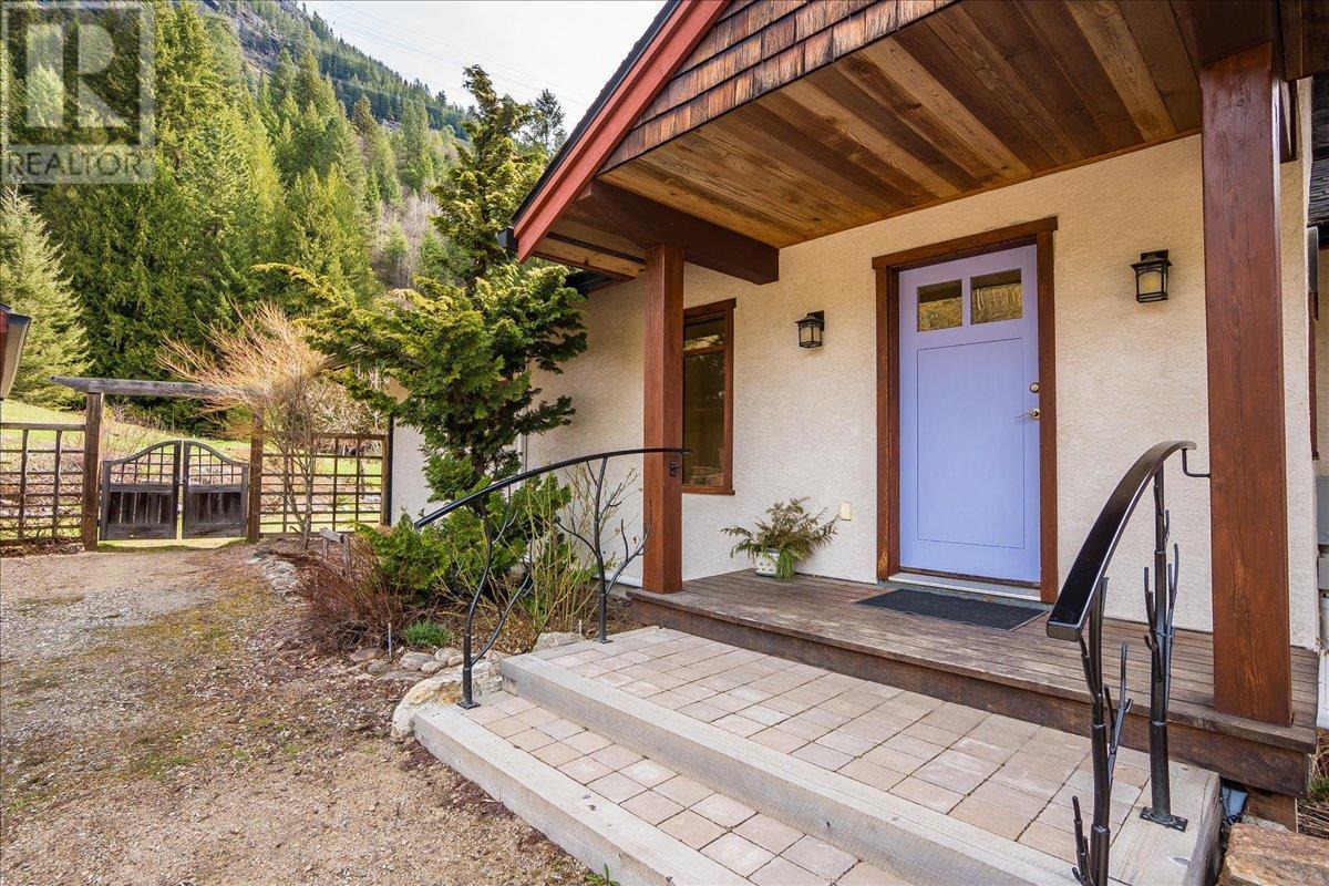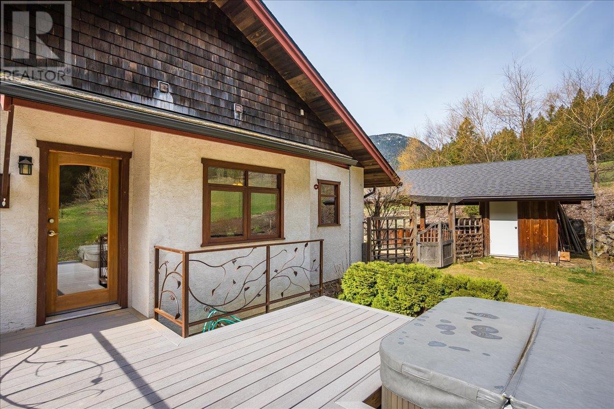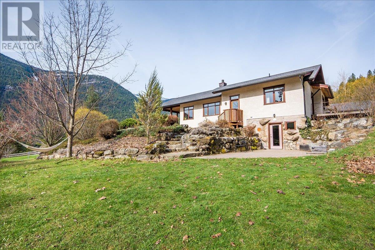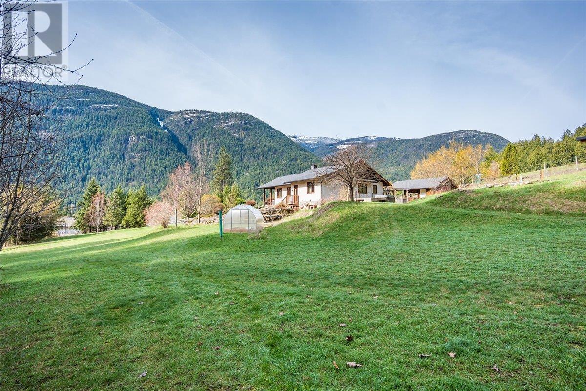 Set on 3.4 tranquil acres with wonderful views and privacy, this thoughtfully designed home offers comfort and efficiency. The split-level main floor features a bright open-concept living/dining/kitchen area with soft-close wood cabinets, updated counters, sink, and stove and a new tile backsplash. There is a spacious entryway, custom wood doors and windows throughout, engineered wood flooring, a walk-in pantry, and a laundry room and a half bathroom off of the kitchen. This floor also offers two bedrooms, a full bathroom with soaker tub and separate shower. Enjoy the covered front porch and a private deck plus a hot tub off the spacious, dual-aspect primary bedroom. The 1,520 sq ft walkout basement includes 720 sq ft of finished living space that includes a large family room/3rd bedroom, an office nook, a home gym area and a cold room. The remainder of this lower level is a large unfinished storage/workshop area with potential for further finished living space. Heating includes in-floor radiant heat (up/down), a WETT-certified wood stove, heat pump with A/C, and two mini-splits. Built with double-stud 8” exterior walls, heat exchange ventilation, and roughed-in solar and central vac. Outside you will find a fenced yard, patios, decks, mature trees, veggie garden, fruit trees, greenhouse, outbuilding, powered carport, chicken coop, and frost-free hydrants. Minutes to the Slocan River, 52 km rail trail, and Slocan Park amenities. Just 25 minutes to Nelson or Castlegar (id:4069)