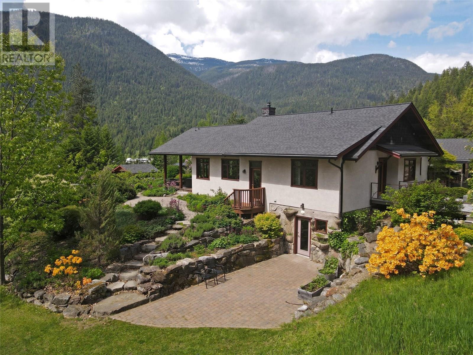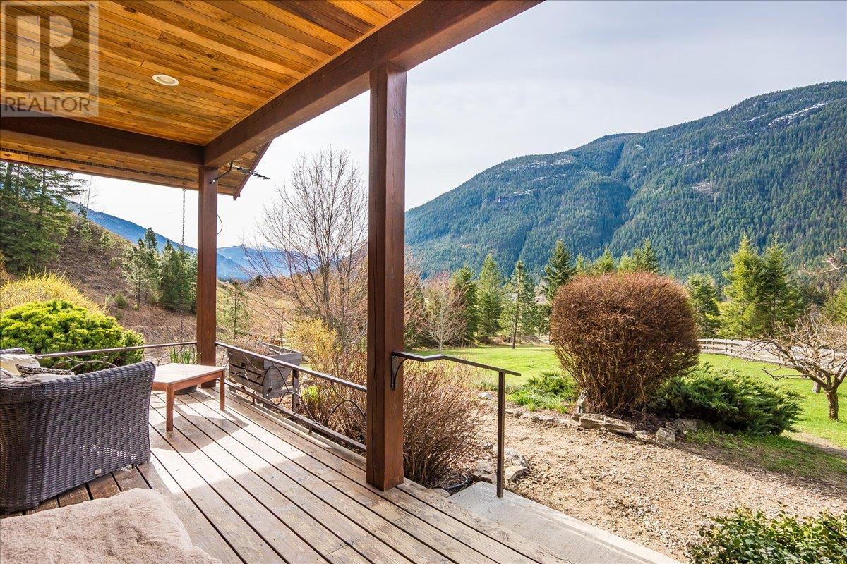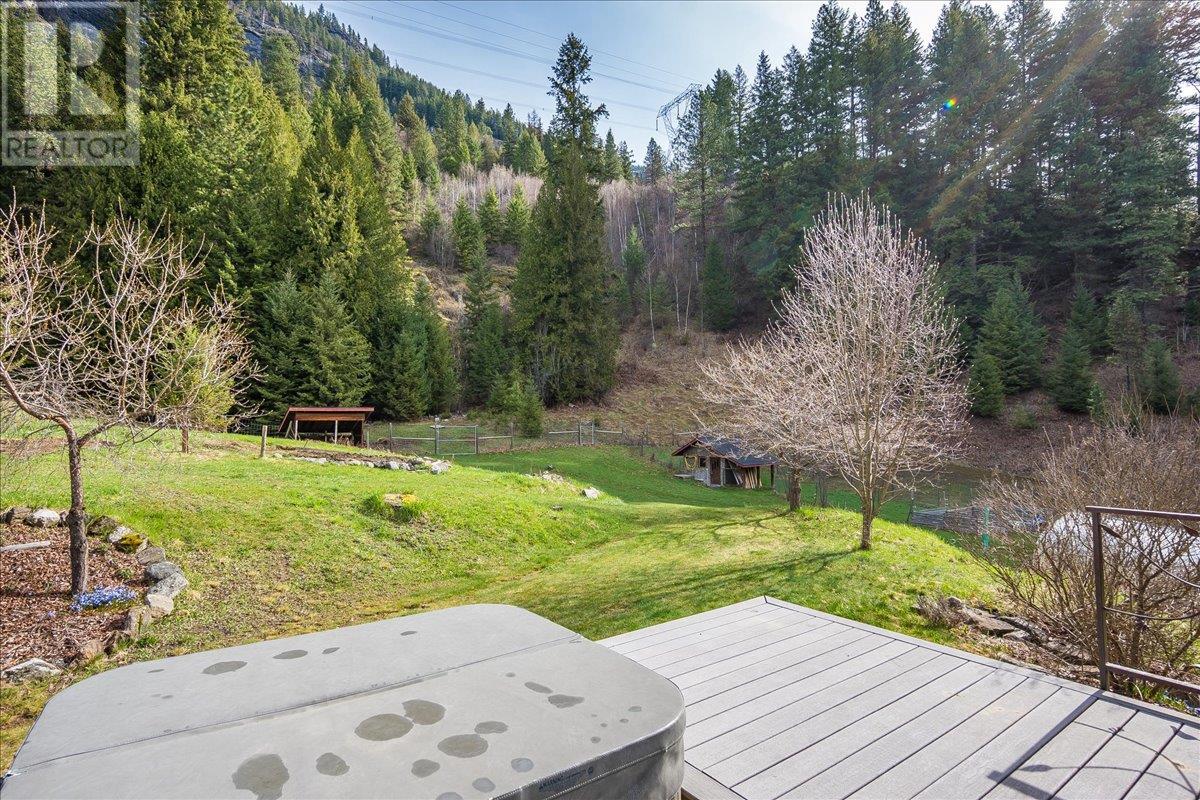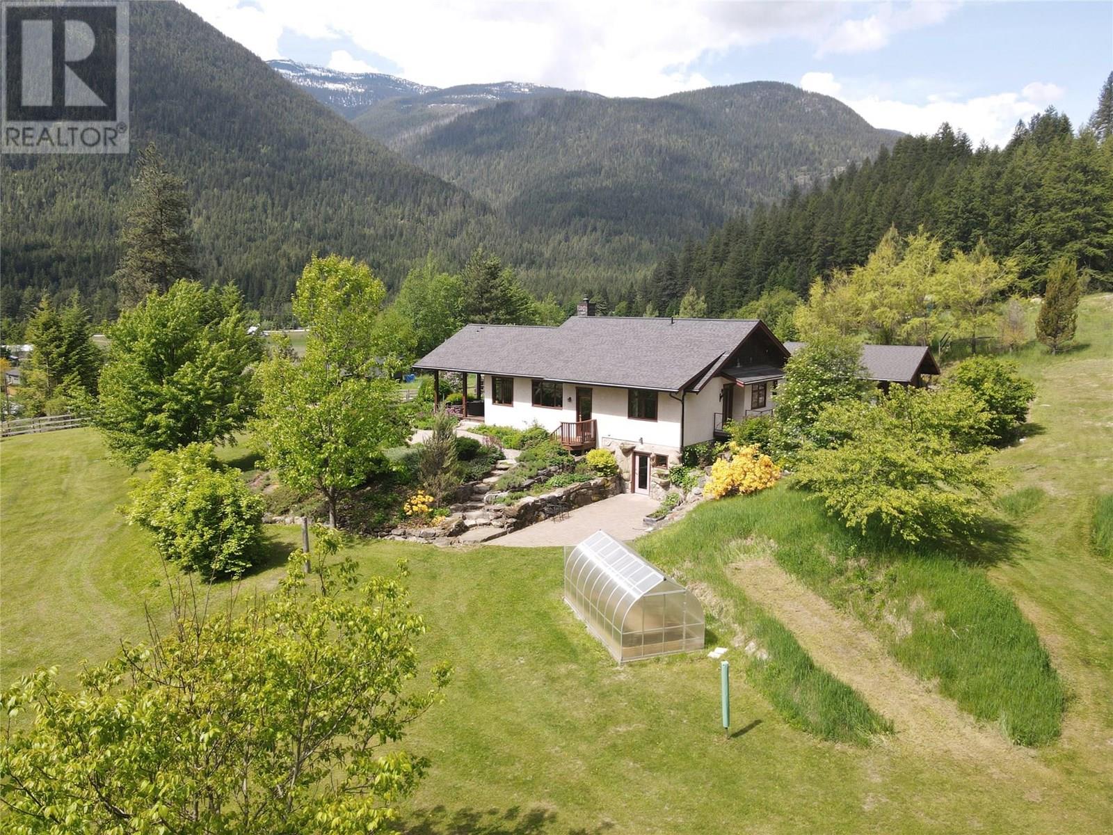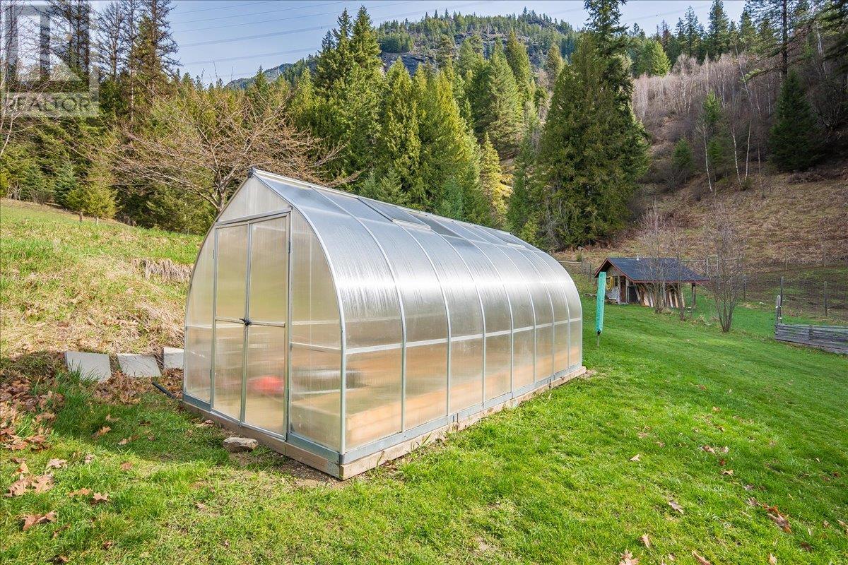Set on 3.4 tranquil acres with wonderful views and privacy, this thoughtfully designed home offers comfort and efficiency. The split-level main floor features a bright open-concept living/dining/kitchen area with soft-close wood cabinets, updated counters, sink, and stove and a new tile backsplash. There is a spacious entryway, custom wood doors and windows throughout, engineered wood flooring, a walk-in pantry, and a laundry room and a half bathroom off of the kitchen. This floor also offers two bedrooms, a full bathroom with soaker tub and separate shower. Enjoy the covered front porch and a private deck plus a hot tub off the spacious, dual-aspect primary bedroom. The 1,520 sq ft walkout basement includes 720 sq ft of finished living space that includes a large family room/3rd bedroom, an office nook, a home gym area and a cold room. The remainder of this lower level is a large unfinished storage/workshop area with potential for further finished living space. Heating includes in-floor radiant heat (up/down), a WETT-certified wood stove, heat pump with A/C, and two mini-splits. Built with double-stud 8” exterior walls, heat exchange ventilation, and roughed-in solar and central vac. Outside you will find a fenced yard, patios, decks, mature trees, veggie garden, fruit trees, greenhouse, outbuilding, powered carport, chicken coop, and frost-free hydrants. Minutes to the Slocan River, 52 km rail trail, and Slocan Park amenities. Just 25 minutes to Nelson or Castlegar (id:4069)