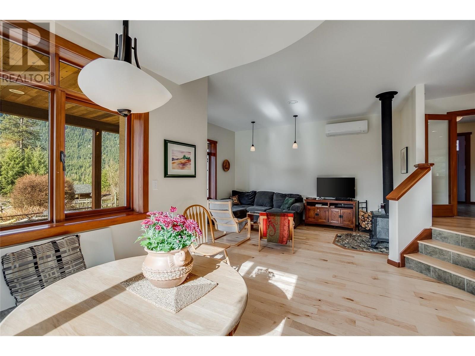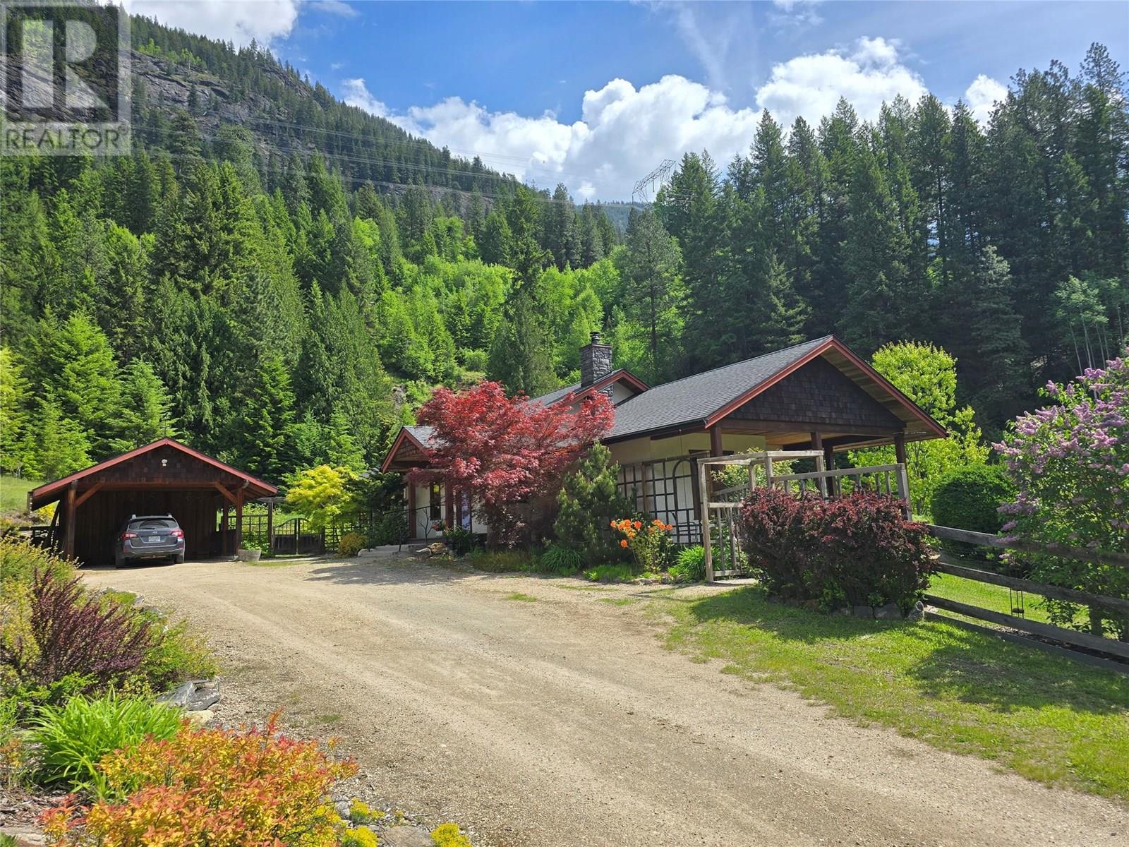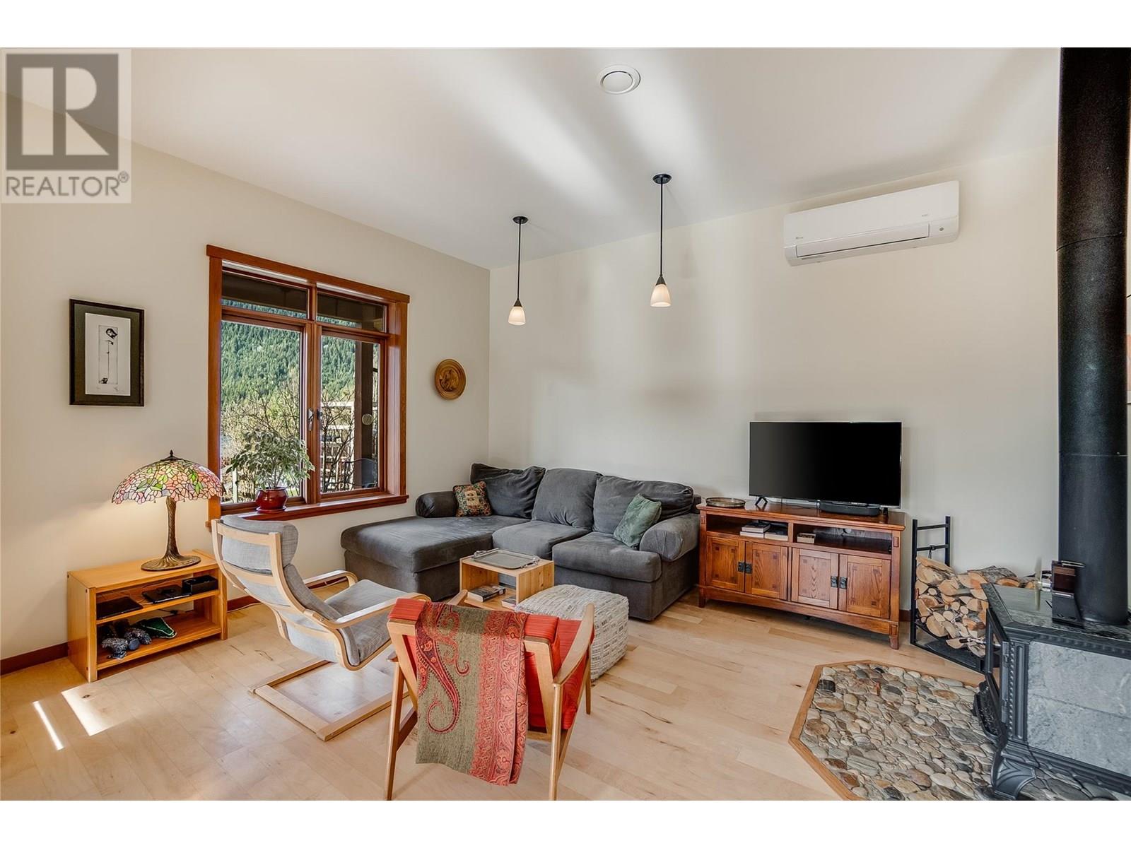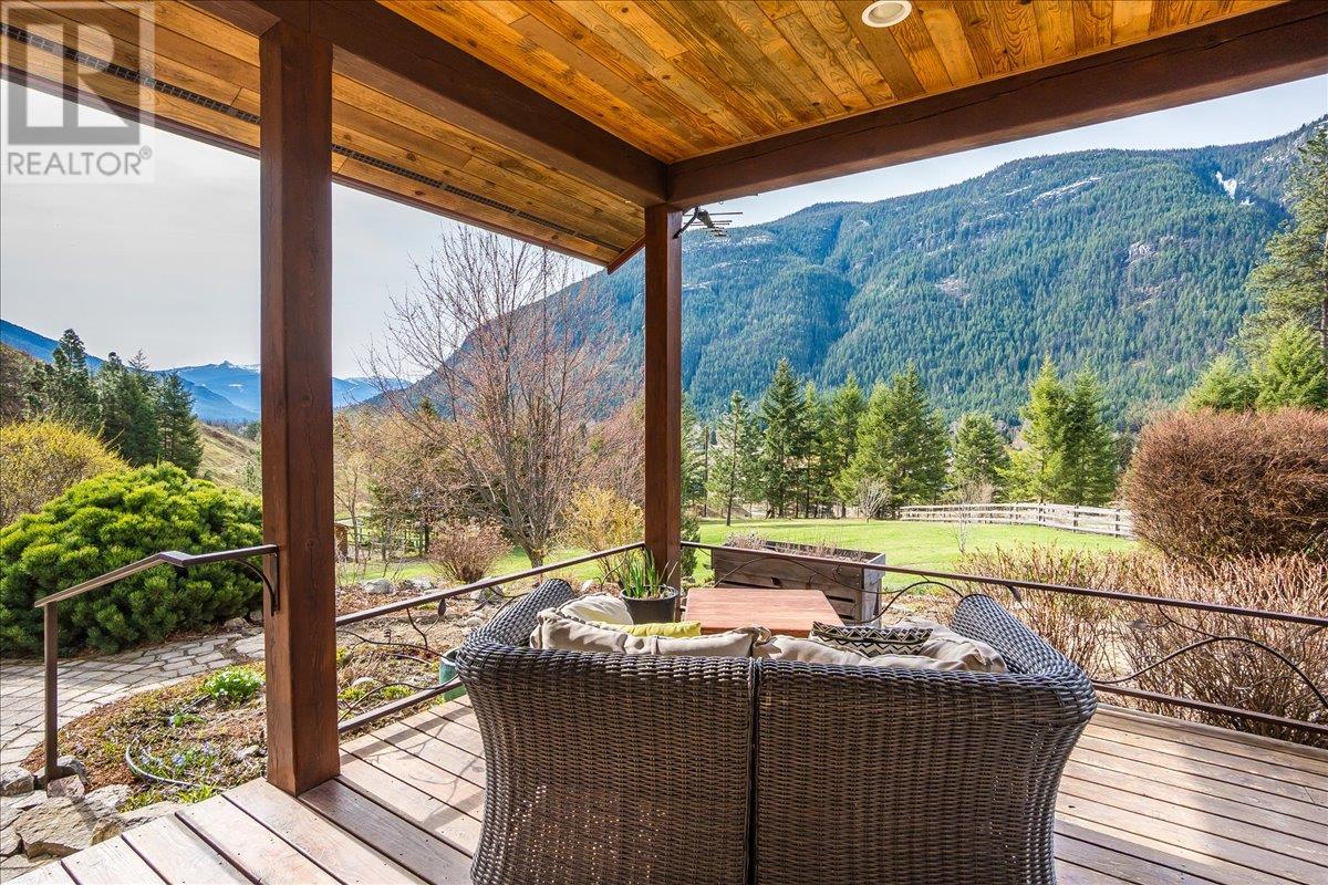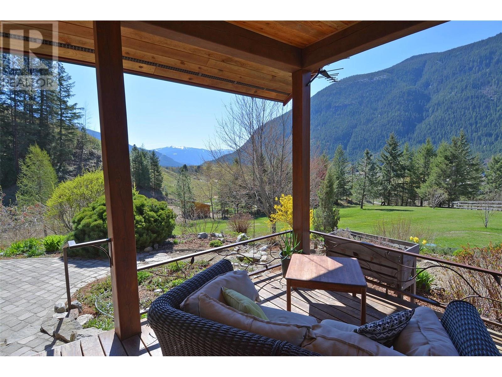 Set on 3.4 tranquil acres with wonderful views and privacy, this thoughtfully designed home offers comfort and efficiency. The split-level main floor features a bright open-concept living/dining/kitchen area with soft-close wood cabinets, updated counters, sink, and stove and a new tile backsplash. There is a spacious entryway, custom wood doors and windows throughout, engineered wood flooring, a walk-in pantry, and a laundry room and a half bathroom off of the kitchen. This floor also offers two bedrooms, a full bathroom with soaker tub and separate shower. Enjoy the covered front porch and a private deck plus a hot tub off the spacious, dual-aspect primary bedroom. The 1,520 sq ft walkout basement includes 720 sq ft of finished living space that includes a large family room/3rd bedroom, an office nook, a home gym area and a cold room. The remainder of this lower level is a large unfinished storage/workshop area with potential for further finished living space. Heating includes in-floor radiant heat (up/down), a WETT-certified wood stove, heat pump with A/C, and two mini-splits. Built with double-stud 8” exterior walls, heat exchange ventilation, and roughed-in solar and central vac. Outside you will find a fenced yard, patios, decks, mature trees, veggie garden, fruit trees, greenhouse, outbuilding, powered carport, chicken coop, and frost-free hydrants. Minutes to the Slocan River, 52 km rail trail, and Slocan Park amenities. Just 25 minutes to Nelson or Castlegar (id:4069)