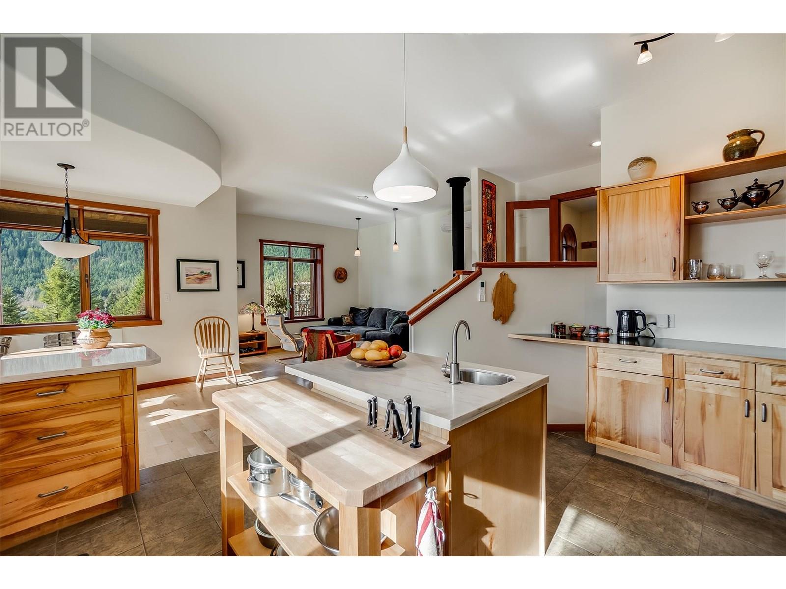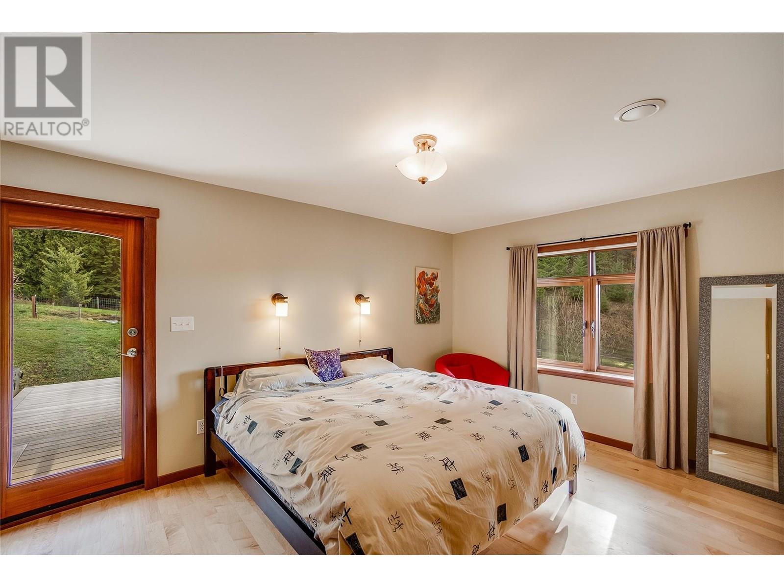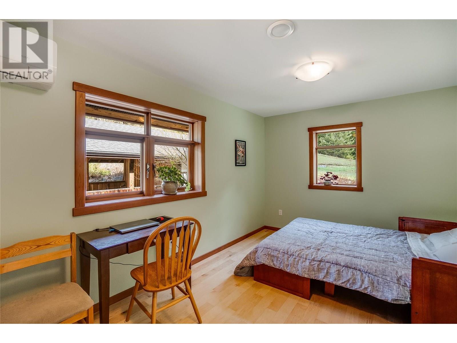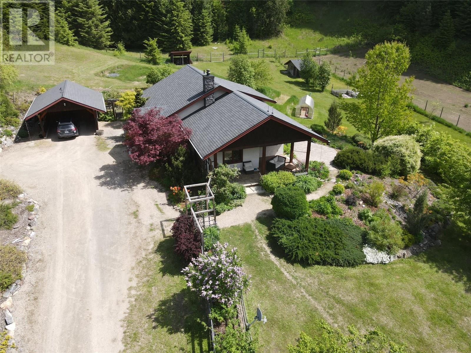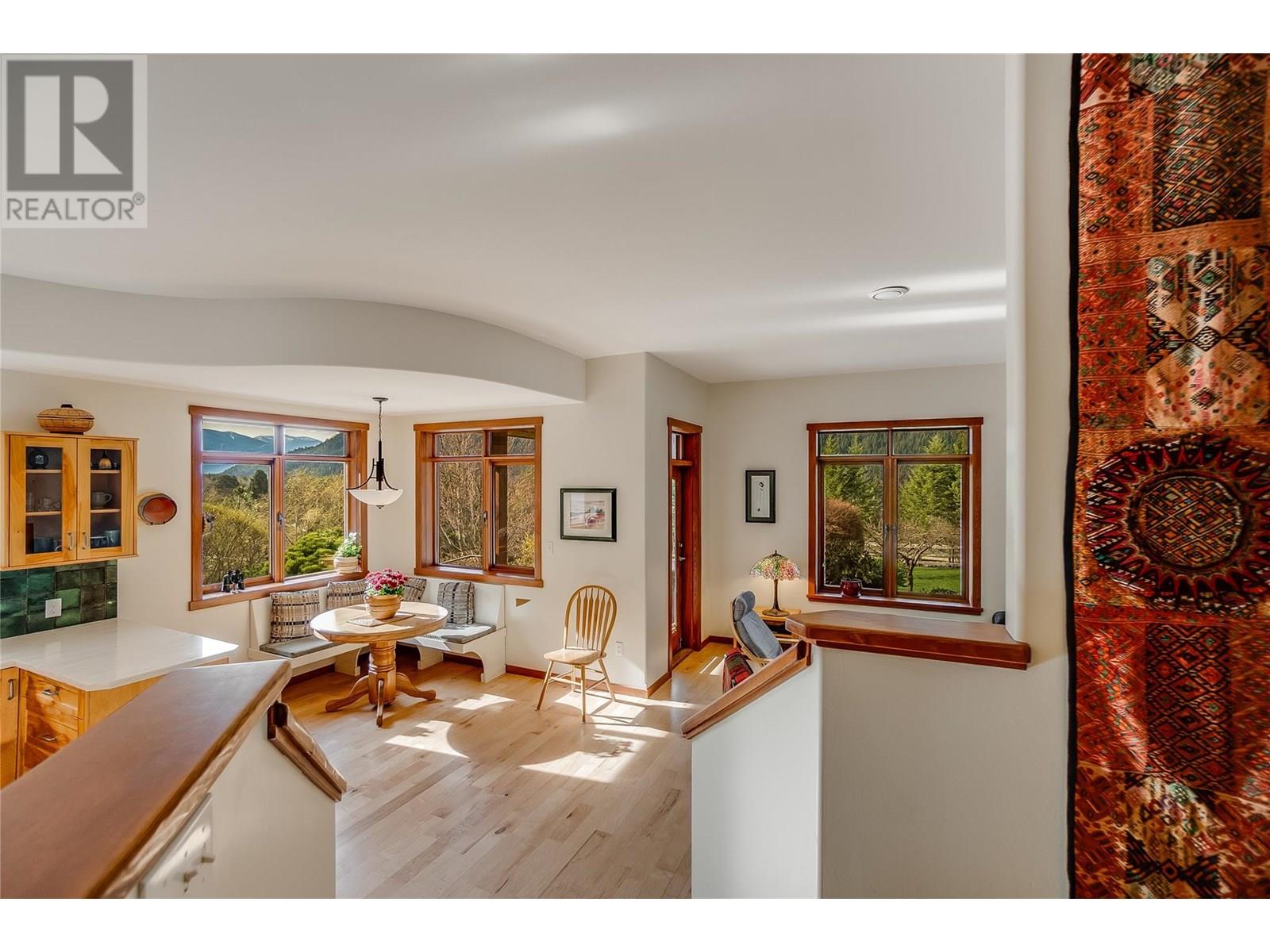 Set on 3.4 tranquil acres with wonderful views and privacy, this thoughtfully designed home offers comfort and efficiency. The split-level main floor features a bright open-concept living/dining/kitchen area with soft-close wood cabinets, updated counters, sink, and stove and a new tile backsplash. There is a spacious entryway, custom wood doors and windows throughout, engineered wood flooring, a walk-in pantry, and a laundry room and a half bathroom off of the kitchen. This floor also offers two bedrooms, a full bathroom with soaker tub and separate shower. Enjoy the covered front porch and a private deck plus a hot tub off the spacious, dual-aspect primary bedroom. The 1,520 sq ft walkout basement includes 720 sq ft of finished living space that includes a large family room/3rd bedroom, an office nook, a home gym area and a cold room. The remainder of this lower level is a large unfinished storage/workshop area with potential for further finished living space. Heating includes in-floor radiant heat (up/down), a WETT-certified wood stove, heat pump with A/C, and two mini-splits. Built with double-stud 8” exterior walls, heat exchange ventilation, and roughed-in solar and central vac. Outside you will find a fenced yard, patios, decks, mature trees, veggie garden, fruit trees, greenhouse, outbuilding, powered carport, chicken coop, and frost-free hydrants. Minutes to the Slocan River, 52 km rail trail, and Slocan Park amenities. Just 25 minutes to Nelson or Castlegar (id:4069)
