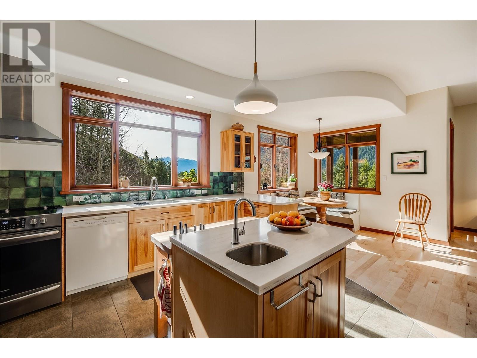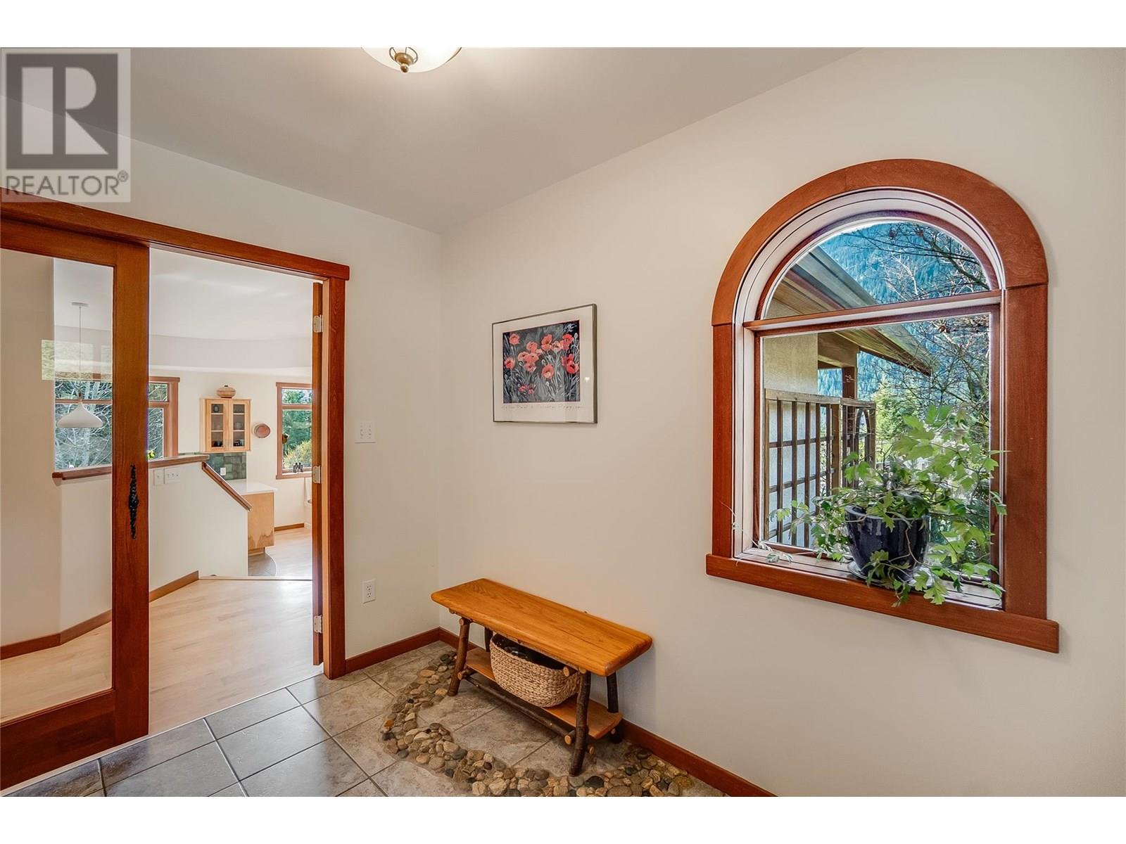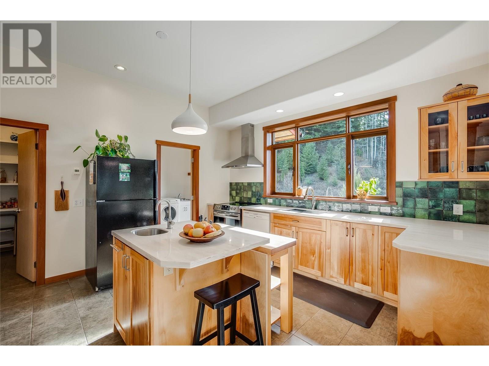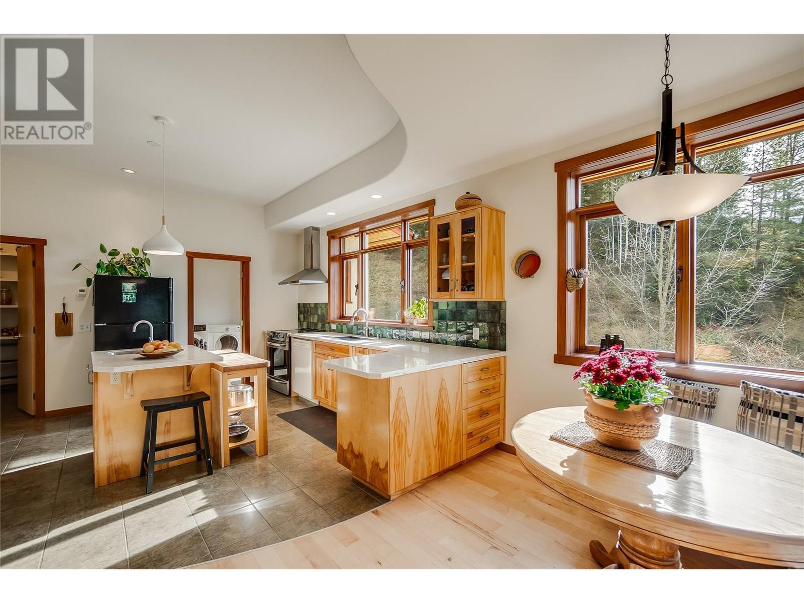Set on 3.4 tranquil acres with wonderful views and privacy, this thoughtfully designed home offers comfort and efficiency. The split-level main floor features a bright open-concept living/dining/kitchen area with soft-close wood cabinets, updated counters, sink, and stove and a new tile backsplash. There is a spacious entryway, custom wood doors and windows throughout, engineered wood flooring, a walk-in pantry, and a laundry room and a half bathroom off of the kitchen. This floor also offers two bedrooms, a full bathroom with soaker tub and separate shower. Enjoy the covered front porch and a private deck plus a hot tub off the spacious, dual-aspect primary bedroom. The 1,520 sq ft walkout basement includes 720 sq ft of finished living space that includes a large family room/3rd bedroom, an office nook, a home gym area and a cold room. The remainder of this lower level is a large unfinished storage/workshop area with potential for further finished living space. Heating includes in-floor radiant heat (up/down), a WETT-certified wood stove, heat pump with A/C, and two mini-splits. Built with double-stud 8” exterior walls, heat exchange ventilation, and roughed-in solar and central vac. Outside you will find a fenced yard, patios, decks, mature trees, veggie garden, fruit trees, greenhouse, outbuilding, powered carport, chicken coop, and frost-free hydrants. Minutes to the Slocan River, 52 km rail trail, and Slocan Park amenities. Just 25 minutes to Nelson or Castlegar (id:4069)