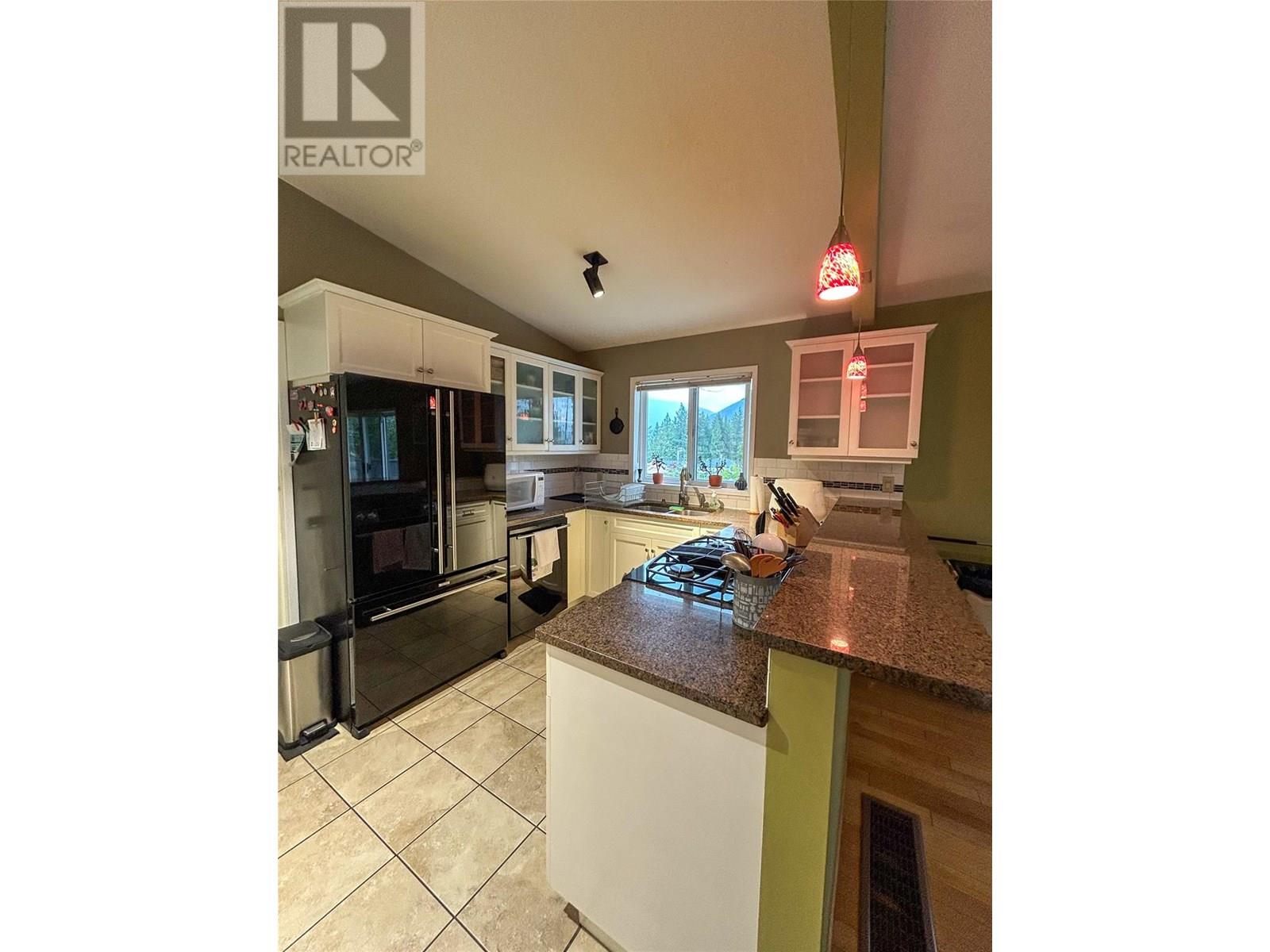 This beautifully maintained 5-bedroom, 3-bathroom home is located just moments from the golf course and offers an exceptional blend of comfort, style, and functionality. The upscale kitchen has been thoughtfully renovated, featuring custom cabinetry, granite countertops, and a gas range—perfect for any home chef. The open-concept layout flows seamlessly through a spacious living and dining area, leading out to a generous deck with sweeping views of Kootenay Lake and the surrounding mountains. The main floor hosts bright, generously sized bedrooms, including a large primary complete with a private en-suite and direct access to the deck—ideal for enjoying the tranquil scenery. Additional features include a separate in-law suite, a double garage, and a beautifully landscaped 0.29-acre lot with mature trees and perennial rock gardens. Offering a peaceful lifestyle while still being in Nelson. (id:4069)
