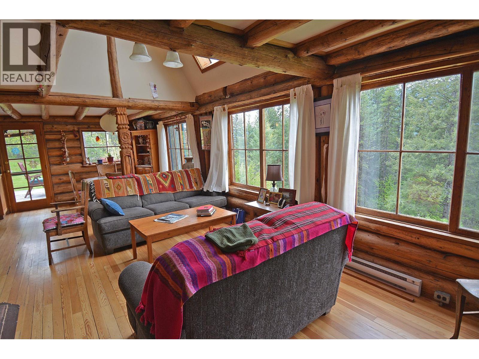 This extraordinary property offers not one, but two homes, making it an ideal retreat for those seeking privacy, and a connection with nature. The land itself is 160 acres predominantly covered with mature timber, providing a lush, green canopy that ensures privacy and a sense of seclusion. Both homes are surrounded by well-maintained clearings and gardens. The first residence is a cozy yet spacious log home that exudes rustic charm and character. It features four bedrooms and one bathroom with ample space for all. The warm and inviting interior is complemented by beautiful logs, large windows, a wood stove and skylights. For those seeking additional accommodation or a separate living space, the second home is well separated from the first residence. This home offers three bedrooms and with some updating one could bring it back to its original grandeur. Add a new pool liner for the in-ground pool and some fresh decking to make your own sanctuary. Whether you are looking for a guest house, a rental opportunity, or a private retreat for extended family, this secondary dwelling offers flexibility and versatility to suit your needs. Enjoy sweeping vistas of the Valhalla Mountains and the Slocan River below with endless opportunities for exploration and adventure. This property is located in Appledale just a short drive from Slocan Lake. (id:4069)