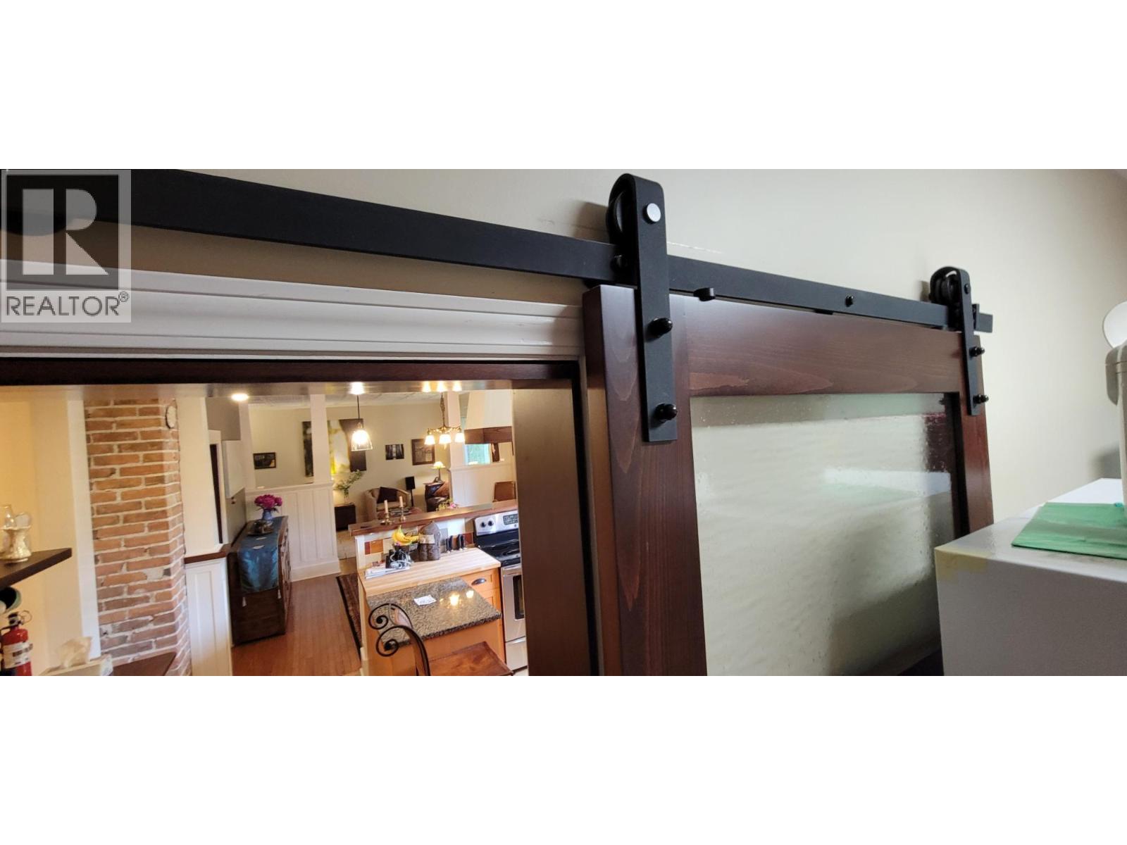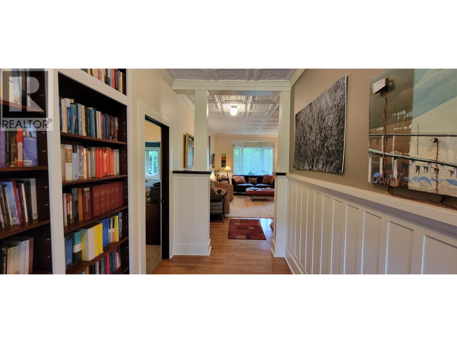 This renovated 1924 farmhouse, on a rural like 0.472 acre lot. Fruit trees, magnolia, new rose garden, lilac and azalea. Fenced garden area. Graceful & spacious with 3 bedrooms, 2.5 bathrooms with attached garage. Wrap-around screened-in veranda catches the morning sun. West-side deck has views of the Valhallas. Understated elegance of the main entrance (with barn-door closet and tall built-in bookshelves). Living area has high coffered ceilings, wainscoting, oak floors, pillars and bookshelves. Aesthetic living room wood stove . The kitchen contains locally crafted cabinets which match the original kitchen dresser, granite countertops, and pastry/bread counter, built-in chopping block, and a copper farm sink. The private master bedroom is off the main entrance hallway with walk-in closet, ensuite bath and king-sized bedroom with wrap-around, half silvered windows for privacy. From the dining room, is a short hallway to the 2 more bedrooms with full bath. One bedroom has private entrance to the veranda; the other has a large walk-in closet which can double as an office or bedroom. Laundry area with deep utility sink, leads to backyard or attached single car shop/garage with 2-piece bath for the gardener or studio occupant. A nearby, separate rebuilt studio was formerly the farm shop. Barn-wood wall and drywall on three sides. Completely wired and heated by a wood stove and electric. New air source heat pump. Licensed water from Malloy Springs for domestic and irrigation use. (id:4069)