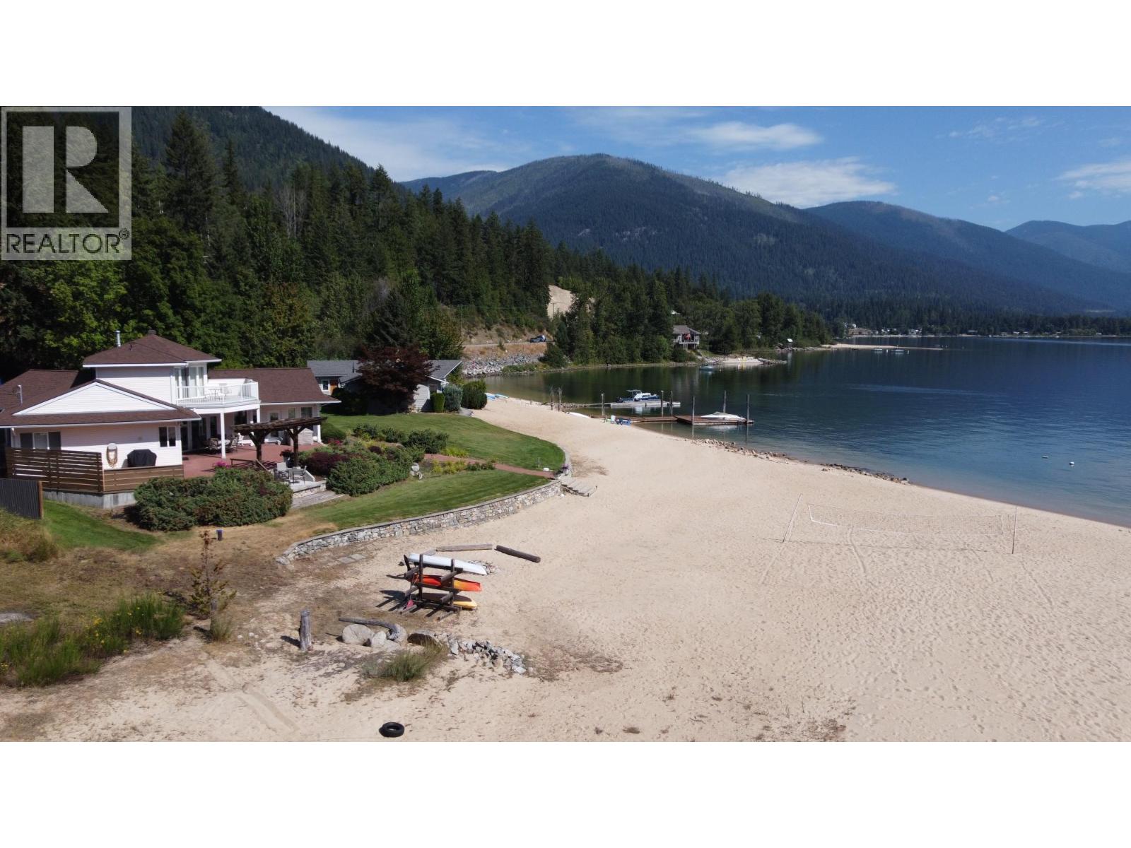One of the most iconic waterfront beaches on Kootenay Lake could now be yours. There is over 200' of sandy beach for you to use at the waterfront, and a full size volleyball court and more sand to enjoy. Year round you get to admire the lake from this beautiful custom designed 3 bedroom 2.5 bath home with spacious rooms and panoramic window plan. The home offers a primary suite in the top floor with jetted soaker tub and walk in shower ensuite, walk in closet and private balcony, while the main floor has a wing with the other 2 large bedrooms and a full bathroom, then the large living room, dining and kitchen all taking advantage of the views and lastly the den, laundry and 2 pce bathroom. The basement is unfinished, below grade and offers more storage than anyone could need and possible development into a media room or rec area for kids. Located 8 mins from Nelson, along the N. Shore, the property offers room for a future garage or covered parking. Enjoyed by 1 family for the last 40 yrs this property is a gem for Kootenay Lake waterfront living. (id:4069)
