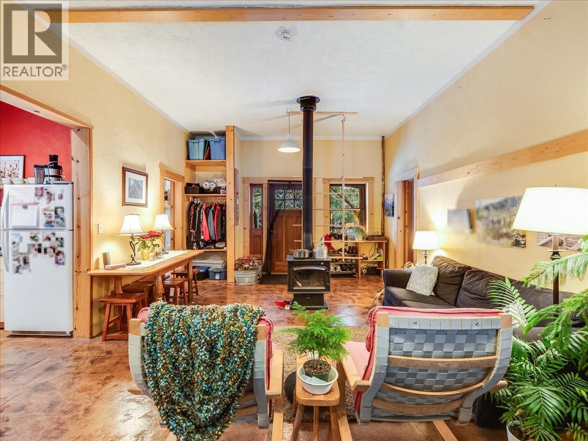 2 HOMES on nearly 40 acres of commercially zoned land just outside of Ymir, BC! This unique property is outside the foreign buyer ban and offers incredible potential for further development, with an oversized septic system already in place and an artesian well supplying fresh water. Two well-built, two-bedroom homes feature concrete floors with in-floor heating, wood stoves, and living roofs that blend beautifully into the forested surroundings. Multiple internal roads provide access throughout the property, which includes a mix of flat and gently sloped terrain, ideal for expansion or a variety of uses. Easy access from the main road and just minutes from world-class recreation, including Whitewater Ski Resort, Red Mountain Resort, Kootenay Pass, the Salmo River, hiking trails, and the Rail Trail. There is a sauna and storage shed as well. Formerly operating as Kootenay Huts, this is a rare opportunity to live and build your dream business in the heart of the Kootenays. (id:4069)