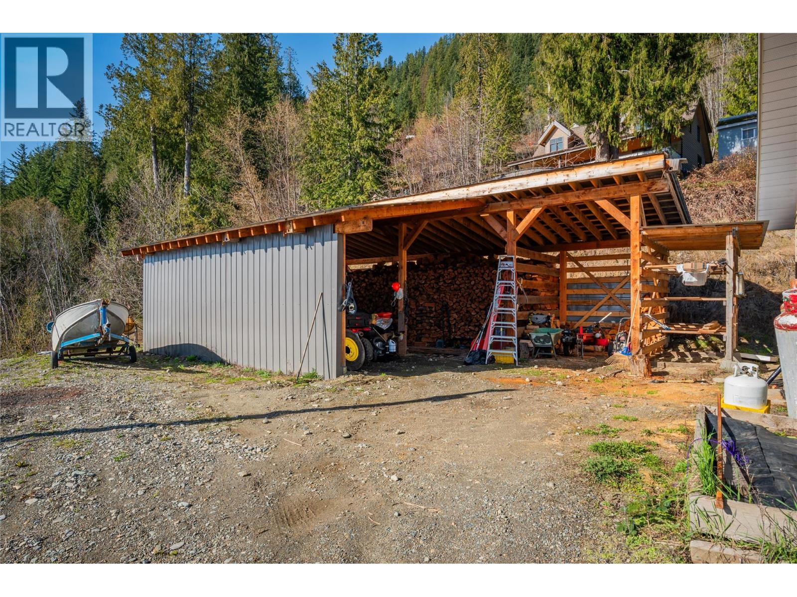 SELLING UNDER ASSESSED VALUE. Located in Ainsworth Hot Springs, this home offers 2,600 sq. ft. of finished living space, featuring two full bathrooms, an upstairs half-bath for guests, a sunken tub soaker room, three bedrooms, an office, and a cold room downstairs. The kitchen includes custom-built cabinets and a full walk-in pantry. There is a certified wood stove on the main floor and another in the basement. Heating and cooling are supplied by a heat pump and furnace. Annual utility costs from January 2025 to January 2026 averaged $100 per month. The property sits on 0.46 acres and includes a double car garage, RV shed, 40 x 20 foot woodshed, covered ATV storage area, utility shed, and a root cellar. There are four garden boxes and an outdoor gazebo with an established grapevine. The circular driveway is asphalt. There are weatherproof exterior electrical outlets and two standpipes for irrigation. The home has a septic system that was pumped last year for the first time since the home was completed in 2018. Drinking water is supplied by a community system, with an annual license cost of $50. (id:4069)